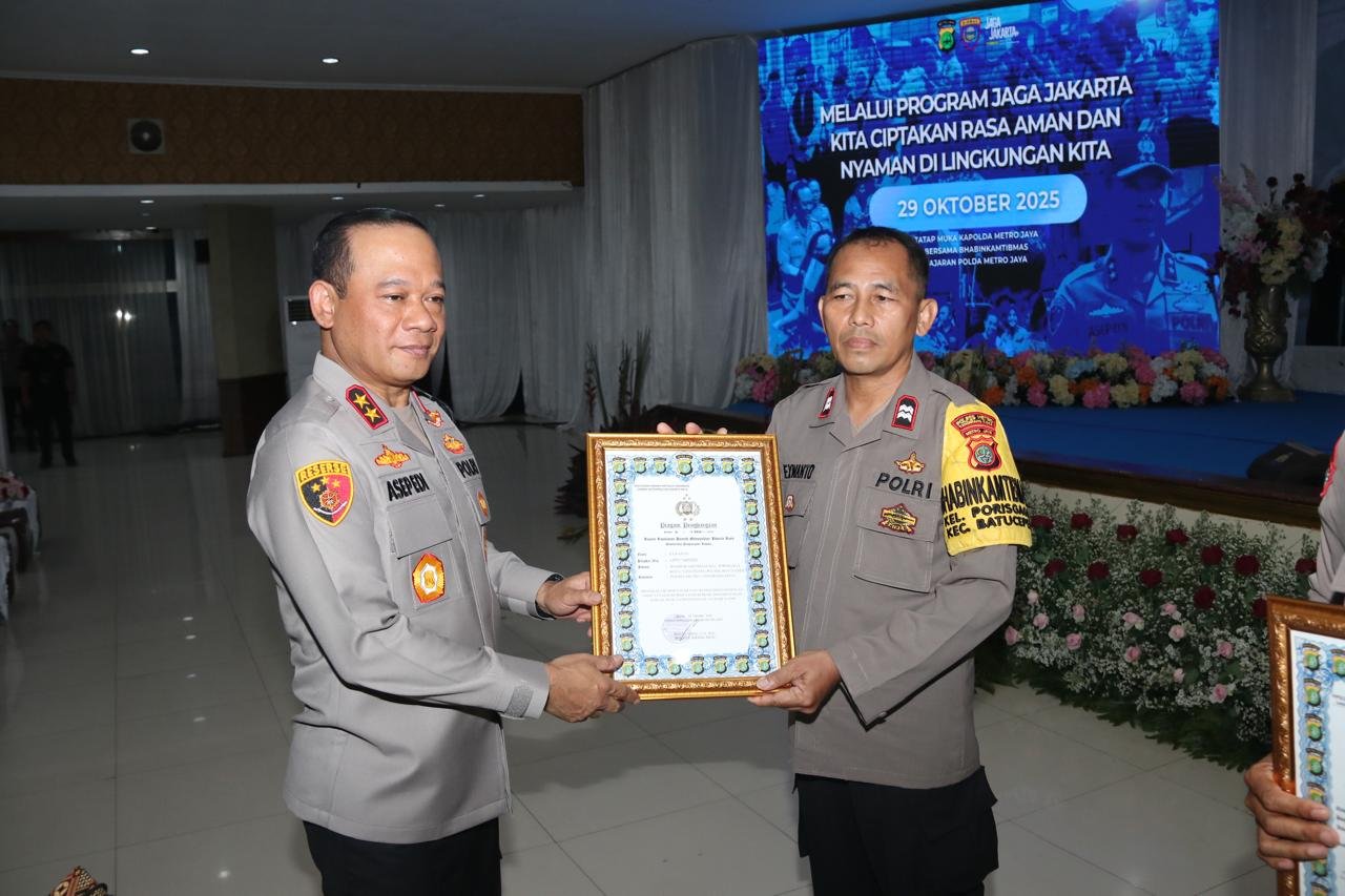 Harmoninews.com (Jakarta) 29 Oktober 2025 — Dalam kegiatan Arahan Kapolda Metro Jaya kepada Bhabinkamtibmas Jajaran Polda Metro Jaya yang digelar di Balai Pertemuan Polda Metro Jaya pada Rabu (29/10/2025), Aiptu Erwanto, Bhabinkamtibmas Kelurahan Poris Gaga, Polsek Batuceper, Polres Metro Tangerang Kota, menerima penghargaan sebagai Bhabinkamtibmas Teladan dari Kapolda Metro Jaya Irjen Pol Asep Edi Suheri, S.I.K., M.Si.