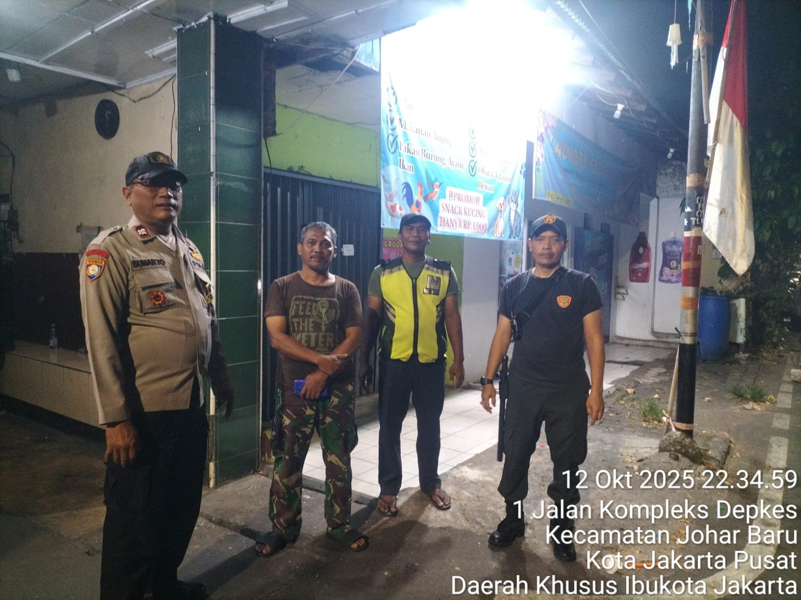 Harmoninews.com (Jakarta Pusat) – Dalam upaya menjaga keamanan dan ketertiban wilayah, Bhabinkamtibmas Kelurahan Johar Baru, Aiptu Sunarto, melaksanakan patroli dialogis dan sambang ke Poskamling RW 07, Jalan Percetakan Negara II, Kelurahan Johar Baru, pada Minggu malam (12/10/2025) pukul 23.30 WIB. Kegiatan ini juga dilengkapi dengan cooling system untuk memastikan situasi tetap aman dan kondusif.