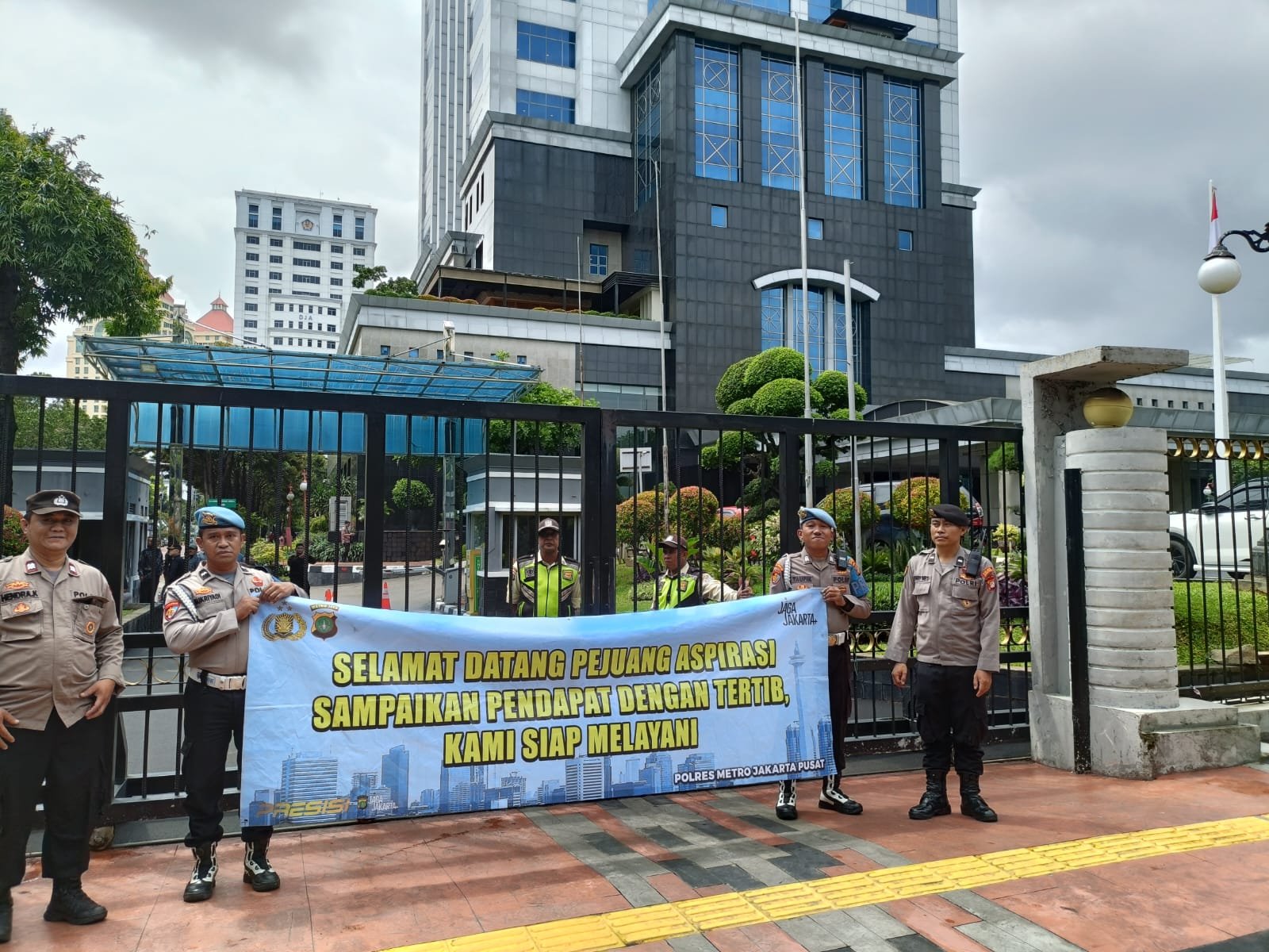 Dalam pelaksanaannya, jajaran Polri menyambut massa aksi dengan pendekatan humanis melalui pemasangan spanduk bertuliskan “Selamat Datang Pejuang Aspirasi”, “Sampaikan Pendapatnya dengan Tertib”, serta “Kami Siap Melayani Anda”. Massa aksi yang dipimpin Pj. Normansyah tersebut berjumlah sekitar 30 orang, dengan pengamanan terbuka dan tertutup melibatkan unsur Polsek Sawah Besar serta pengawasan dari jajaran Polres Metro Jakarta Pusat.
