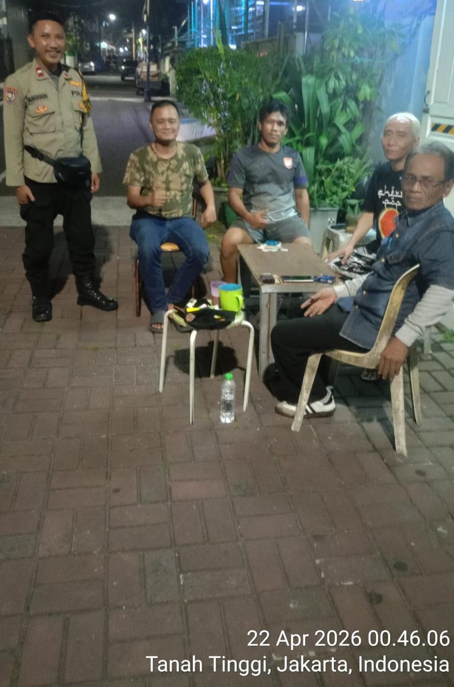 Kegiatan yang berlangsung sekitar pukul 23.15 WIB di Jalan Purbaya RT 10/05 tersebut dipimpin oleh Bhabinkamtibmas Kelurahan Tanah Tinggi, Aipda Tangguh, dengan menyambangi poskamling serta berdialog langsung bersama warga dan petugas keamanan lingkungan.