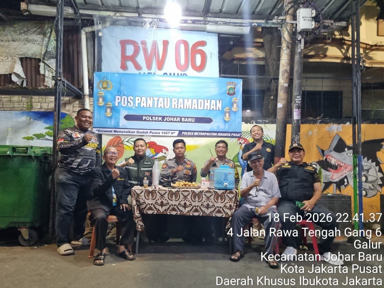 Harmoninews.com (Jakarta Pusat) – Dalam rangka menjaga situasi kamtibmas tetap aman dan kondusif selama bulan suci Ramadhan 1447 H/2026, jajaran Polsek Johar Baru melaksanakan kegiatan Pos Pantau Ramadhan di wilayah Kelurahan Galur, Kecamatan Johar Baru, Rabu (18/2/2026) pukul 22.00 WIB.