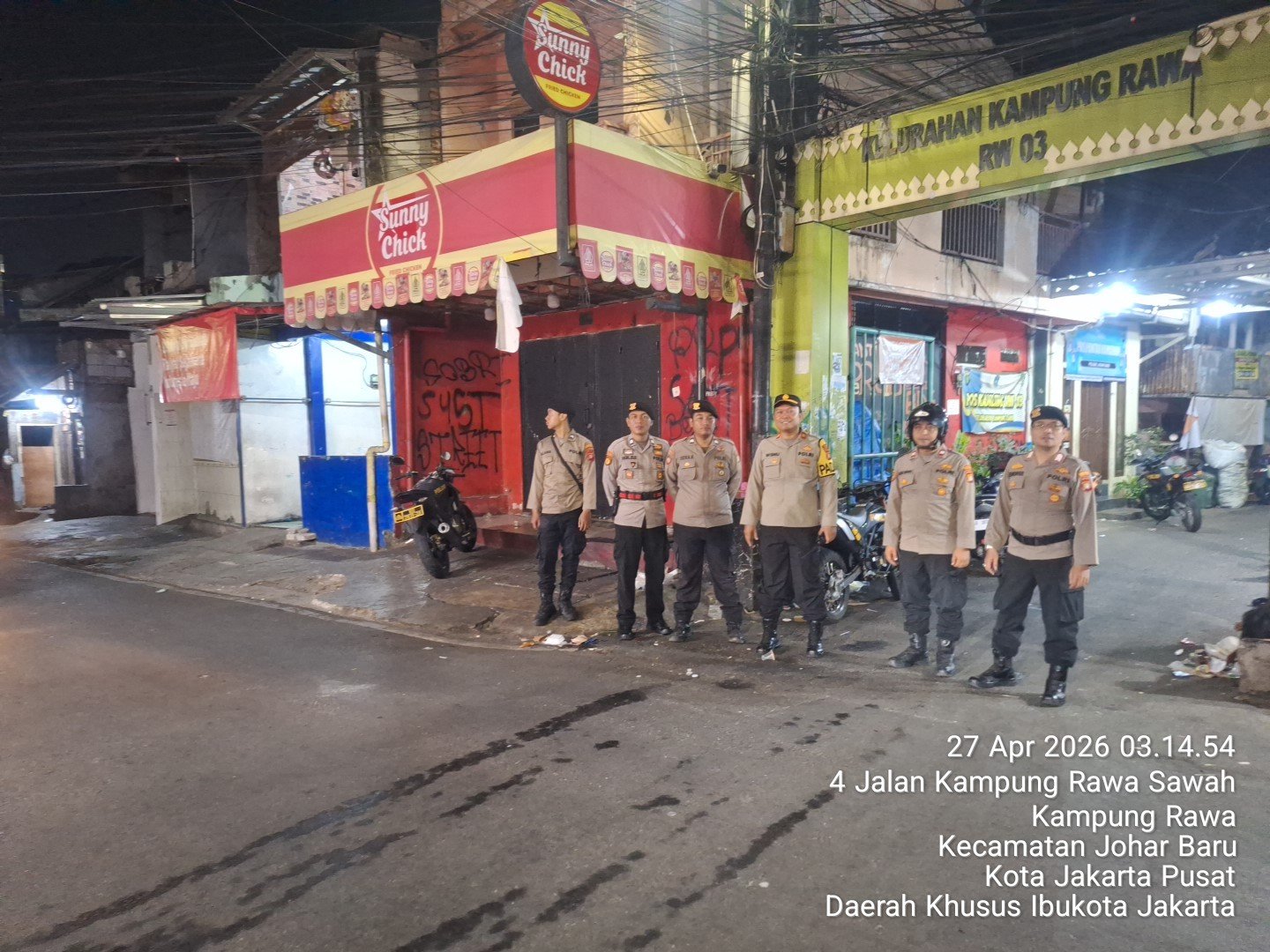 Harmoninews.com (Jakarta Pusat) – Guna menjaga stabilitas keamanan wilayah, jajaran Polsek Johar Baru menggelar patroli cipta kondisi dengan menyisir sejumlah titik rawan pada Senin (27/4/2026) dini hari. Kegiatan dimulai sekitar pukul 02.25 WIB dan melibatkan 10 personel kepolisian.