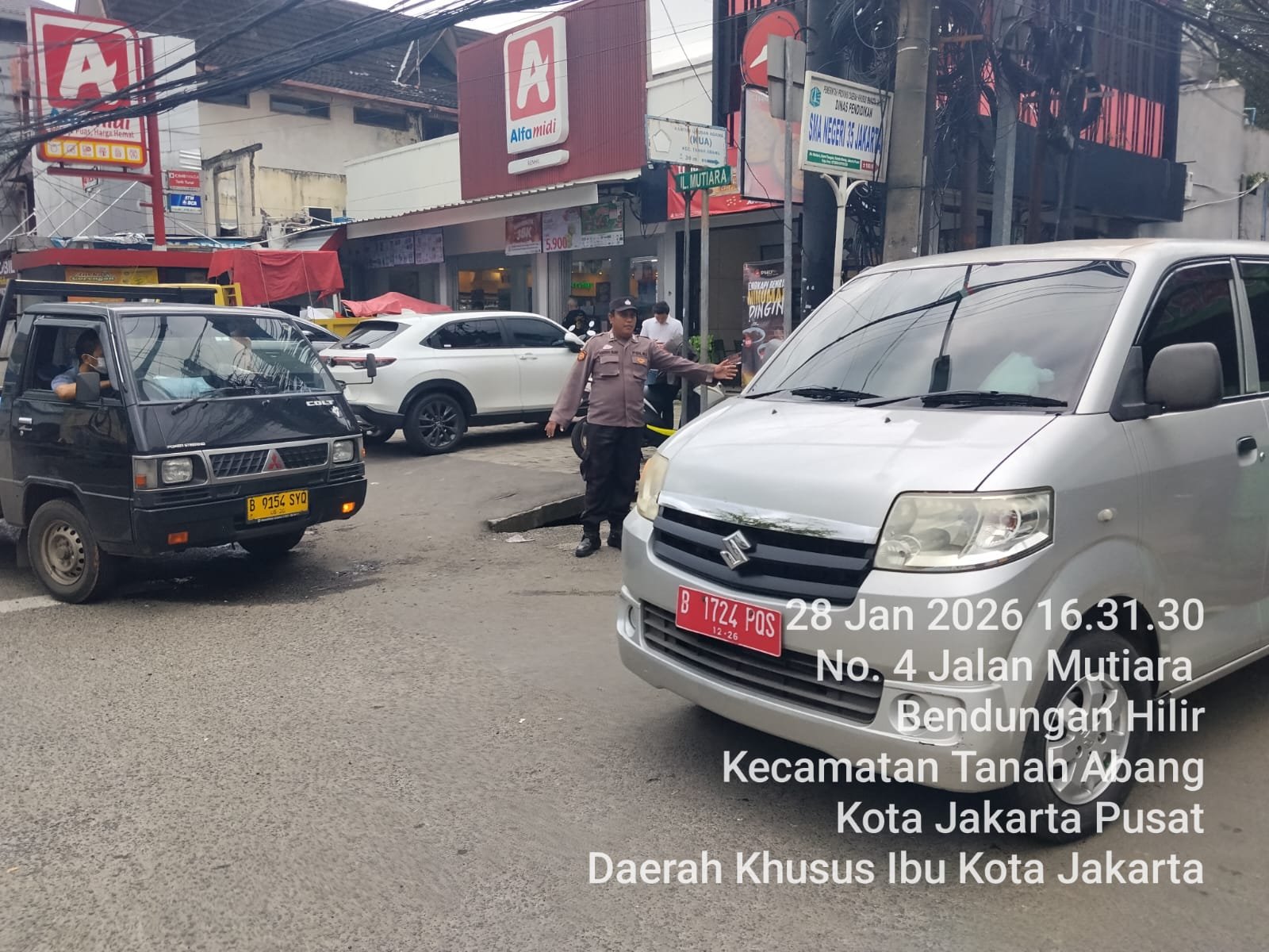 Harmoninews.com (Jakarta Pusat) – Personel Polsek Metro Tanah Abang melaksanakan kegiatan pengaturan lalu lintas melalui Strong Point/Police Hazard pada Rabu, (28/1/2026), sore hari. Kegiatan tersebut dilaksanakan di pertigaan Jalan Mutiara, Bendungan Hilir, Tanah Abang, Jakarta Pusat.