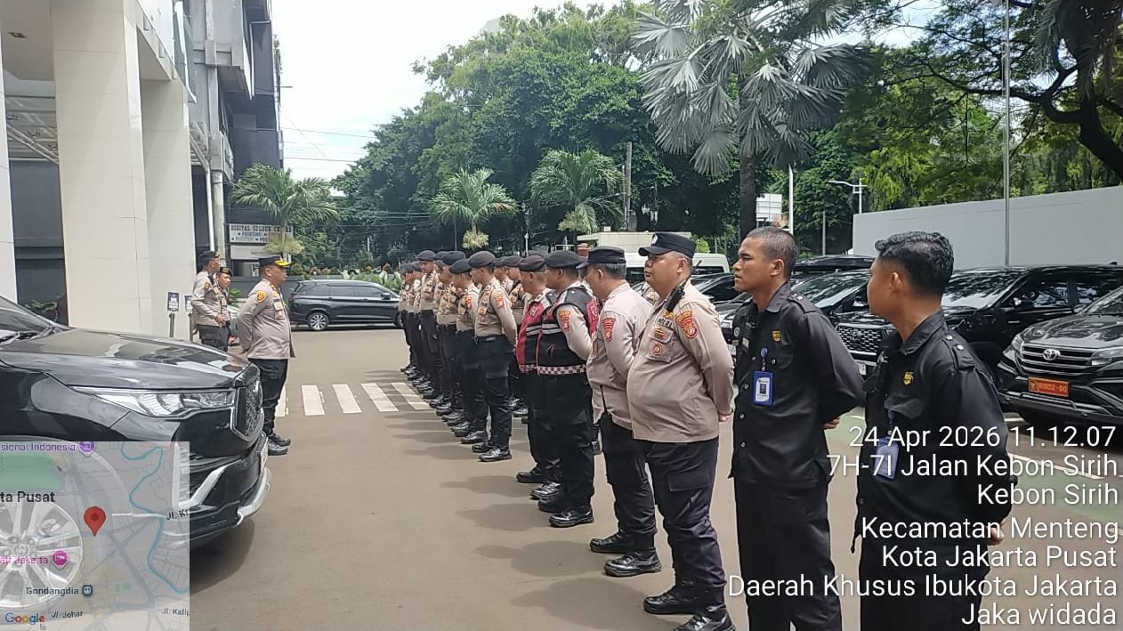 Harmoninews.com (Jakarta Pusat) – Dalam rangka memastikan situasi keamanan dan ketertiban masyarakat tetap kondusif, jajaran Polsek Metro Menteng melaksanakan apel pasukan pelayanan pengamanan guna mengantisipasi kegiatan unjuk rasa (unras) di Kantor Badan Gizi Nasional (BGN), Jalan Kebon Sirih No. 1, Menteng, Jakarta Pusat, Jumat (24/4/2026).