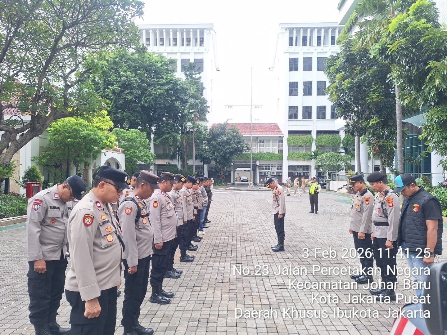 Apel dipimpin langsung oleh Kapolsek Johar Baru Kompol Saiful Anwar selaku Kepala Pengamanan Objek. Sebanyak puluhan personel gabungan diterjunkan, terdiri dari personel Polsek Johar Baru dan petugas pengamanan dalam (Pamdal), yang ditempatkan sesuai dengan ploting dan tugas masing-masing.