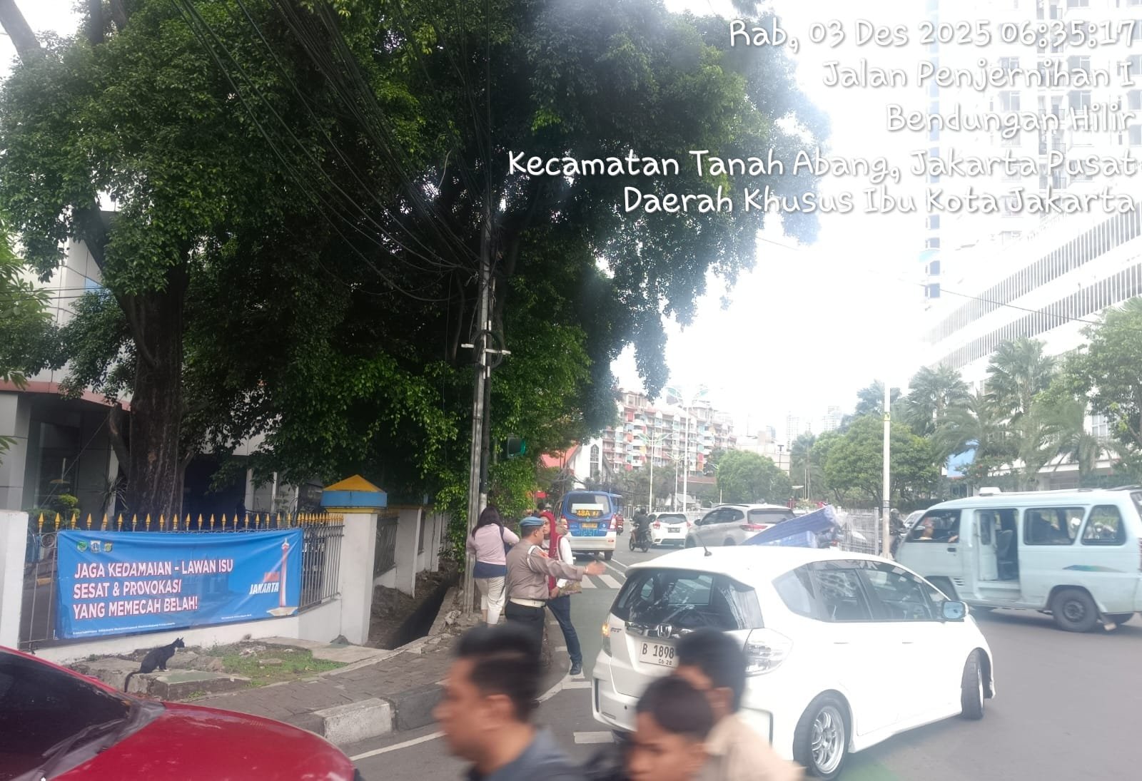 Harmoninews.com (Jakarta Pusat) — Pagi hari ini Senin (3/12/2025), personel dari Polsek Metro Tanah Abang melaksanakan pengaturan arus lalu-lintas di persimpangan Traffic Light (TL) Penjernihan Raya, Kelurahan Bendungan Hilir, Kecamatan Tanah Abang, Jakarta Pusat.