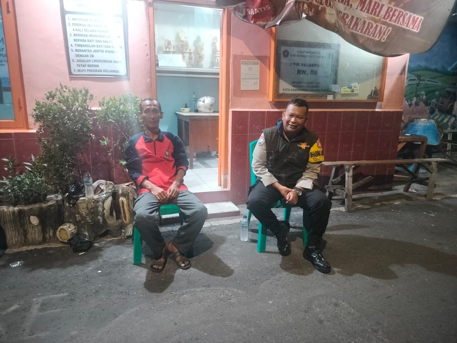 Dalam kegiatan tersebut, Aipda Purwanto disambut hangat oleh Bp. Buang, salah satu petugas jaga malam. Keduanya berdialog santai mengenai situasi keamanan lingkungan serta langkah-langkah yang dapat dilakukan bersama untuk menjaga ketertiban masyarakat.