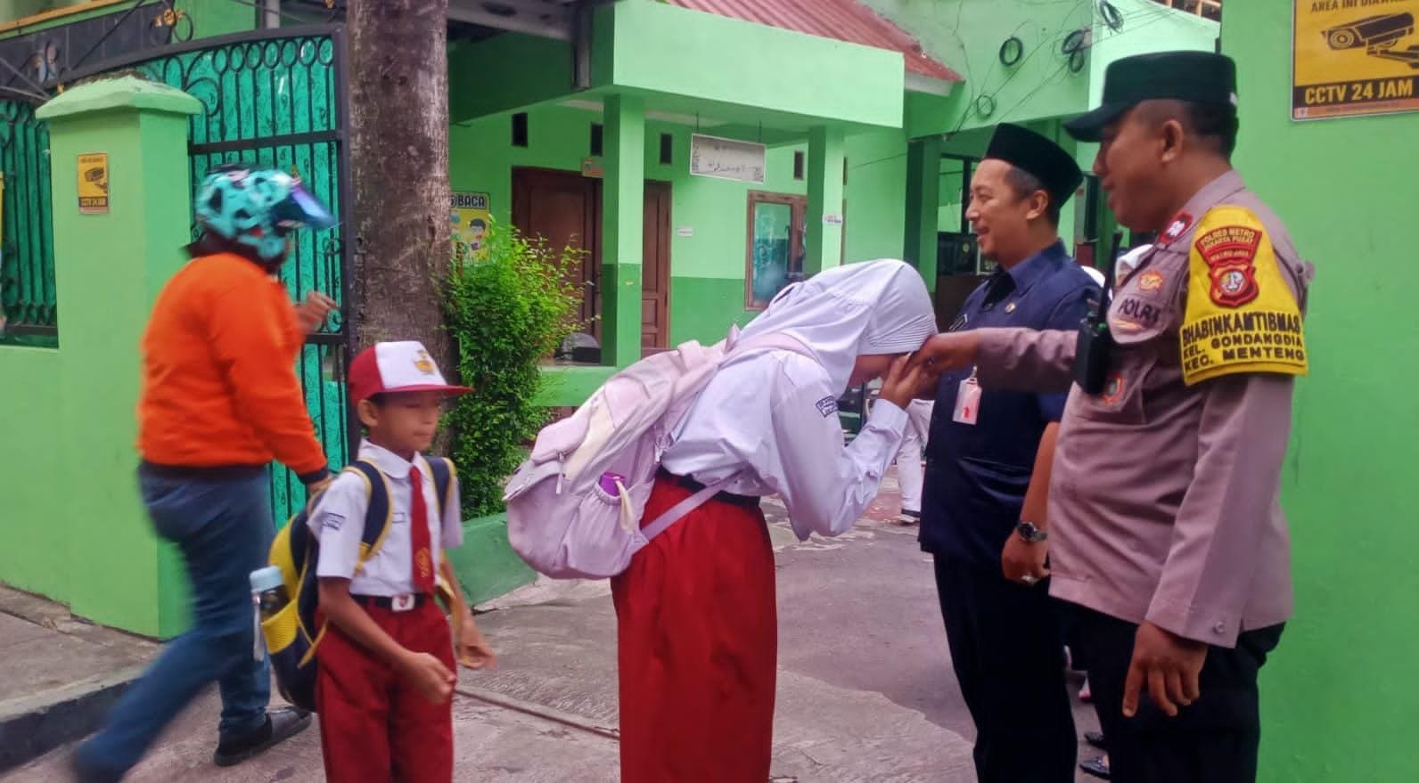 Harmoninews.com (Jakarta Pusat) – Dalam wujud nyata pelayanan prima dan kepedulian terhadap keselamatan masyarakat, Bhabinkamtibmas Kelurahan Gondangdia, Polsek Metro Menteng, AIPTU Kamidi, melaksanakan pengaturan arus lalu lintas pagi hari sekaligus membantu siswa SDN Gondangdia 03 saat masuk sekolah di Jalan Probolinggo, Kelurahan Gondangdia, Menteng, Jakarta Pusat, pada Senin (13/10/2025).