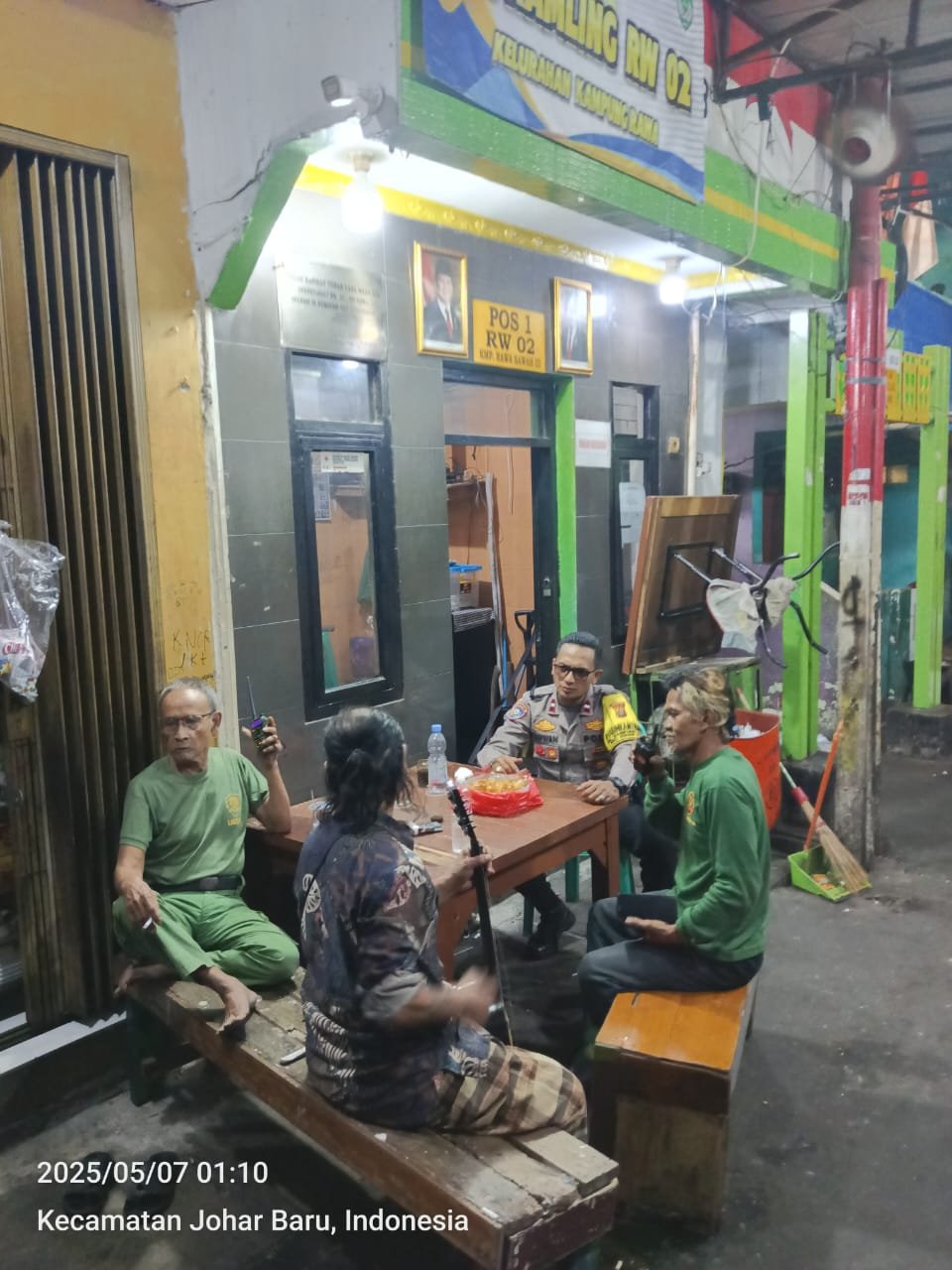 Harmoninews.com (Jakarta Pusat) – Aipda Ikhwan, Bhabinkamtibmas Kelurahan Kampung Rawa, melaksanakan giat sambang Pos Satkamling di RT 11 RW 02 pada Rabu dini hari, 7 Mei 2025. Dalam kegiatan tersebut, Aipda Ikhwan bertemu dengan pengurus satkamling, Pak Edi Leo dan Pak Ewo, untuk membahas berbagai hal terkait keamanan wilayah.