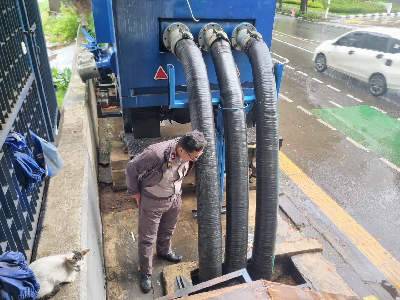 Dari hasil pemantauan bersama petugas pompa, diketahui bahwa kondisi debit air Kali Ciliwung masih dalam keadaan normal dan terkendali, sehingga belum berpotensi menimbulkan genangan di wilayah sekitar. Kondisi ini menjadi indikator awal bahwa sistem pengendalian banjir masih berjalan secara optimal.