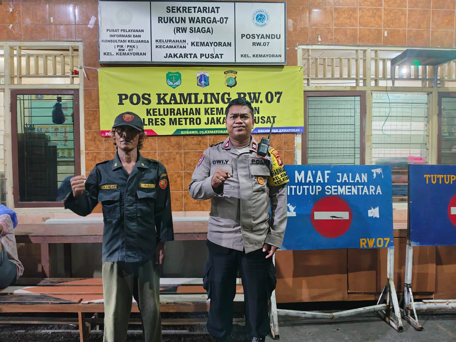 Selanjutnya Aiptu Dwi bertemu dengan Iskandar selaku Awak Kamling Kelurahan Kemayoran guna memberikan himbauan Kamtibmas.