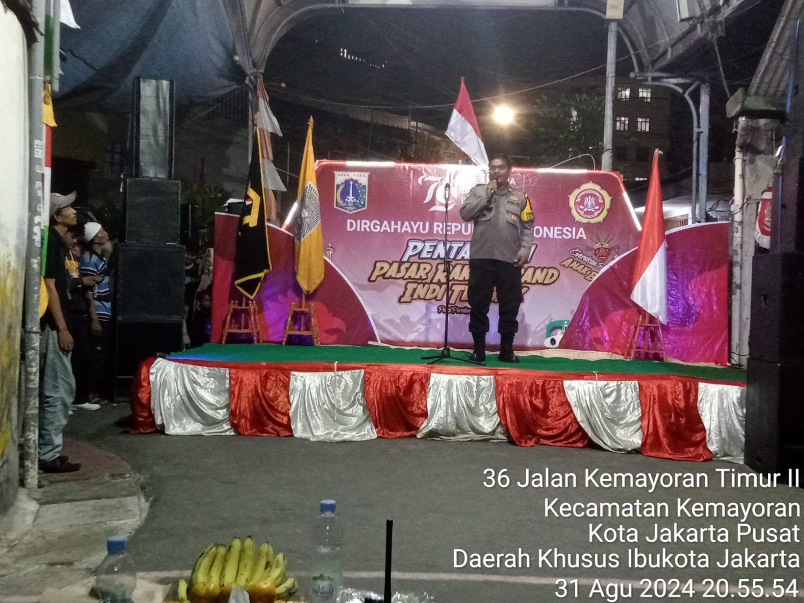 Harmoninews.com (Jakarta Pusat) – Bhabinkamtibmas Kelurahan Kemayoran Aiptu Dwi Menghadiri Kegiatan Malam Puncak HUT RI Ke-79 di RW 01, 07, dan 08 Kelurahan Kemayoran Kecamatan Kemayoran Jakarta Pusat. Minggu (1/9/2024).
