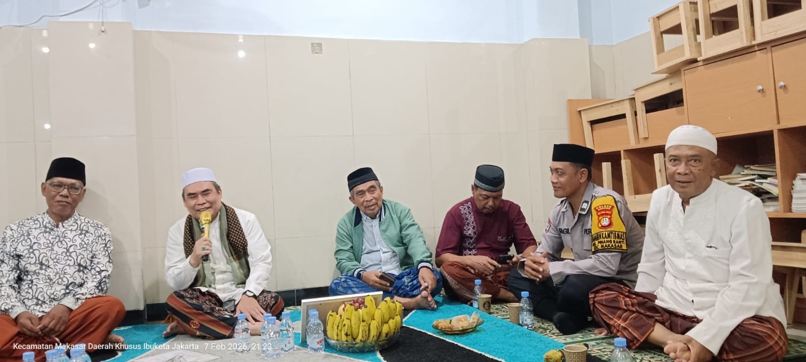 Harmoninews.com (Jakarta) – Bhabinkamtibmas Kelurahan Pinang Ranti menghadiri kegiatan pengajian warga RW 01 yang digelar di Musala Al Ikhlas, Jalan Hias RT 01/01, Kelurahan Pinang Ranti, Kecamatan Makasar, Jakarta Timur, Sabtu (7/2/2026) malam. Kehadiran polisi dalam kegiatan keagamaan tersebut sebagai bentuk kedekatan dengan masyarakat sekaligus menyampaikan imbauan kamtibmas.