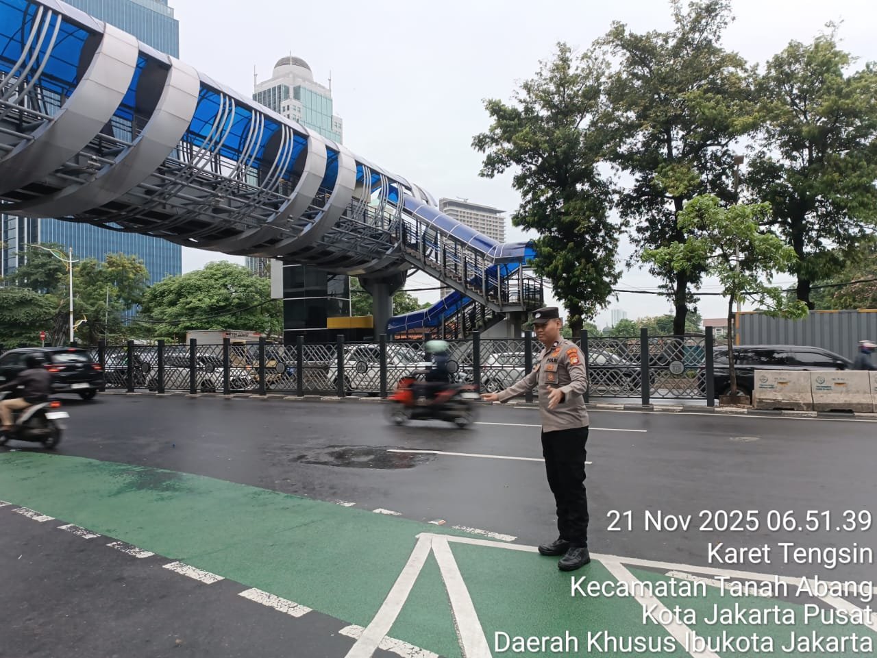 Untuk itu, Petugas Polsek Metro Tanah Abang melakukan pengaturan lalu lintas pada Jumat, (21/11/2025). mereka telah bersiaga di pertigaan karet saat arus kendaraan mulai meningkat, petugas mulai mengambil posisi strategis di simpul utama untuk mengatur alur pergerakan kendaraan, memastikan prioritas jalur yang lebih padat, serta memberikan kesempatan penyeberang jalan untuk melintas dengan aman.