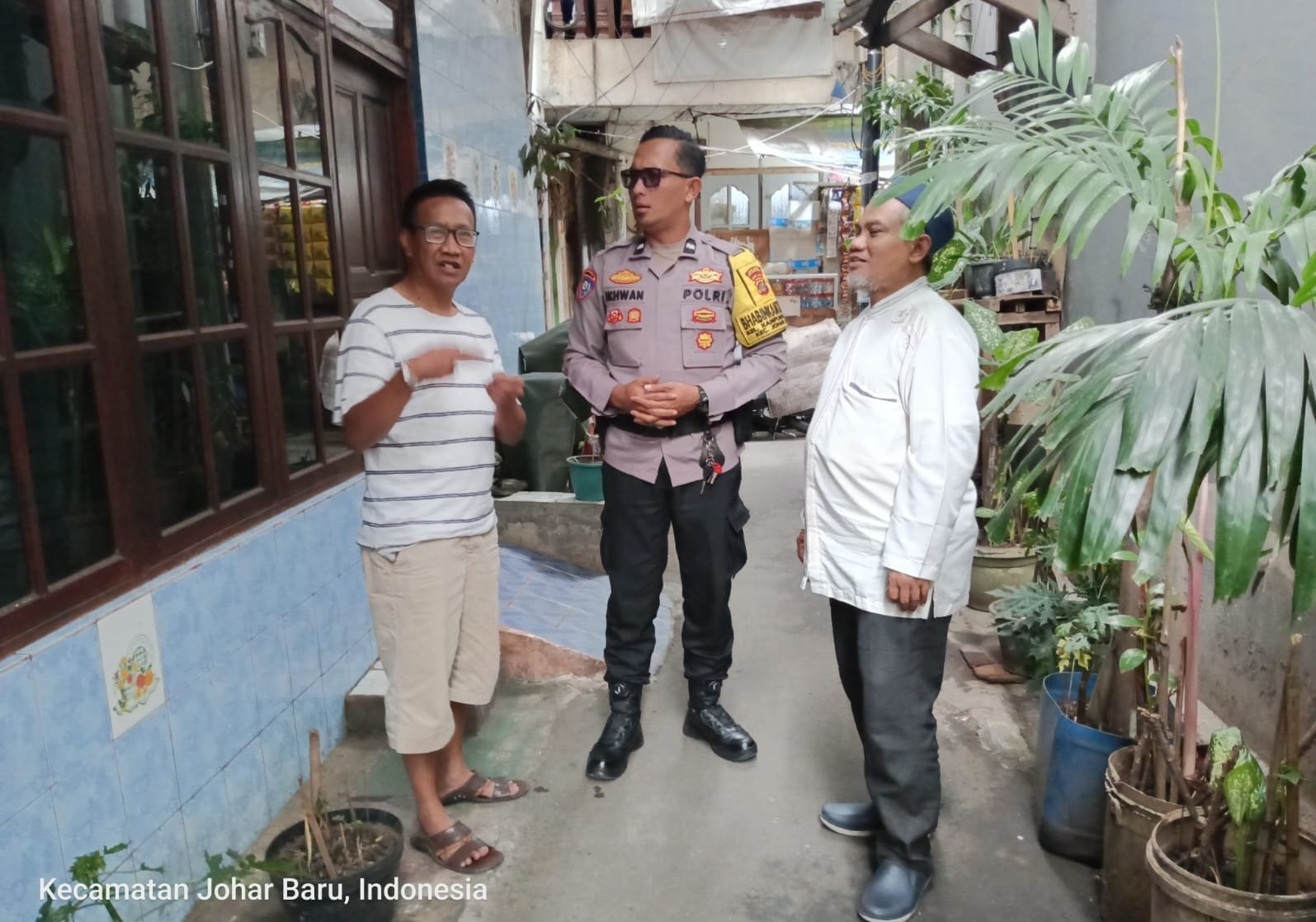 Dalam kegiatan ini, Aipda Ikhwan berdialog dengan Pak Fauzi selaku Ketua RT03 RW03 serta Ustad Aris, membahas kondisi lingkungan dan potensi kerawanan wilayah. Petugas menyampaikan pesan kamtibmas, mengajak masyarakat untuk menjaga keamanan bersama, serta menekankan pentingnya deteksi dini dan pencegahan dini terhadap potensi gangguan.