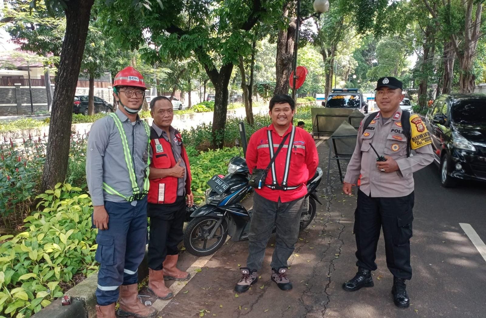 Harmoninews.com (Jakarta Pusat) – Bhabinkamtibmas Kelurahan Aiptu Kamidi kepada petugas proyek jalan Sultan Syahrir Menteng Jakarta Pusat. Senin, (8/7/2024).