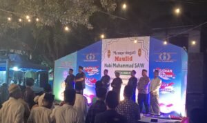 Harmoninews.com (Bekasi Kota) – Kapolsek Bekasi Barat, AKP Dr. H. Wahyudi, SH., MH., menghadiri kegiatan peringatan Maulid Nabi Muhammad SAW yang diselenggarakan oleh warga di Lapangan Mawar Raya RW 08, Kelurahan Jakasampurna, Kecamatan Bekasi Barat, Kota Bekasi, pada Kamis, 2 Oktober 2025.