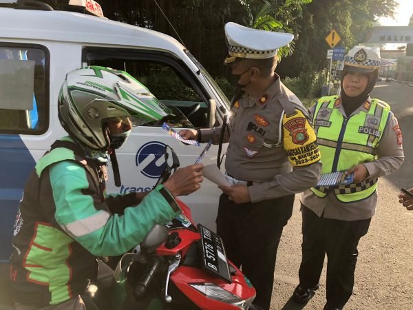 Pembagian brosur diberikan kepada Pengendara yang melintas, dan dipimpin langsung oleh Kasat Lantas bersama anggota dan unsur TNI.