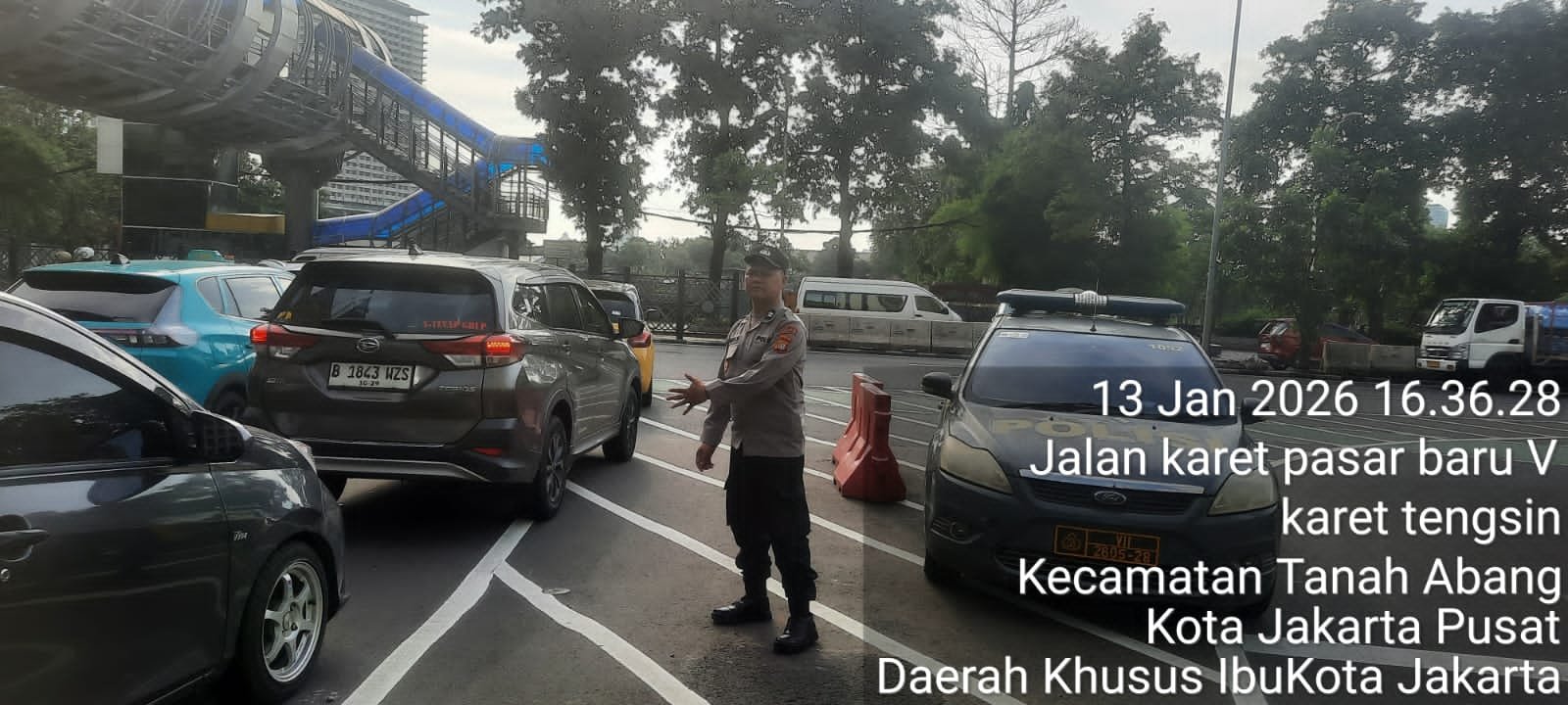 Area TL Karet Pasar Baru Barat V merupakan salah satu titik yang memiliki arus kendaraan cukup tinggi dengan pertemuan beberapa jalur utama, sehingga memerlukan kehadiran petugas untuk memastikan kelancaran lalu lintas, ucap Haris.