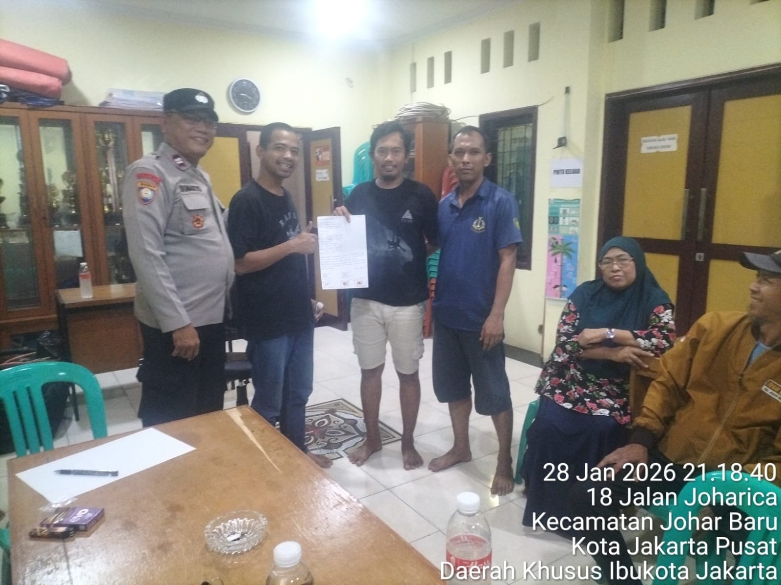 Sementara itu, Kapolsek Johar Baru Kompol Saiful Anwar mengapresiasi kedewasaan para pihak yang memilih jalur musyawarah. “Kami mendorong setiap permasalahan warga diselesaikan secara dialogis dan kekeluargaan, dengan tetap menjunjung hukum dan rasa keadilan,” katanya.