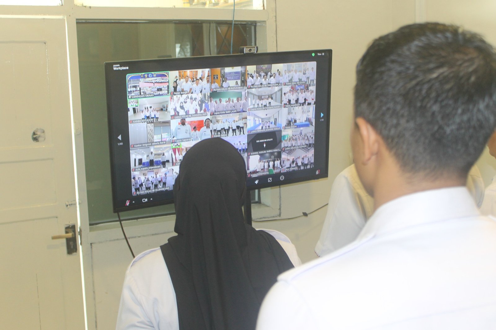 Apel yang digelar secara daring melalui platform Zoom ini menjadi momentum penting untuk memperkuat soliditas antarpegawai, serta mempererat tali silaturahmi dalam suasana kemenangan dan penuh maaf pasca bulan suci Ramadan. Seluruh jajaran Rutan Bangil mulai dari pejabat struktural hingga staf fungsional mengikuti kegiatan dengan penuh khidmat dari aula utama rutan.