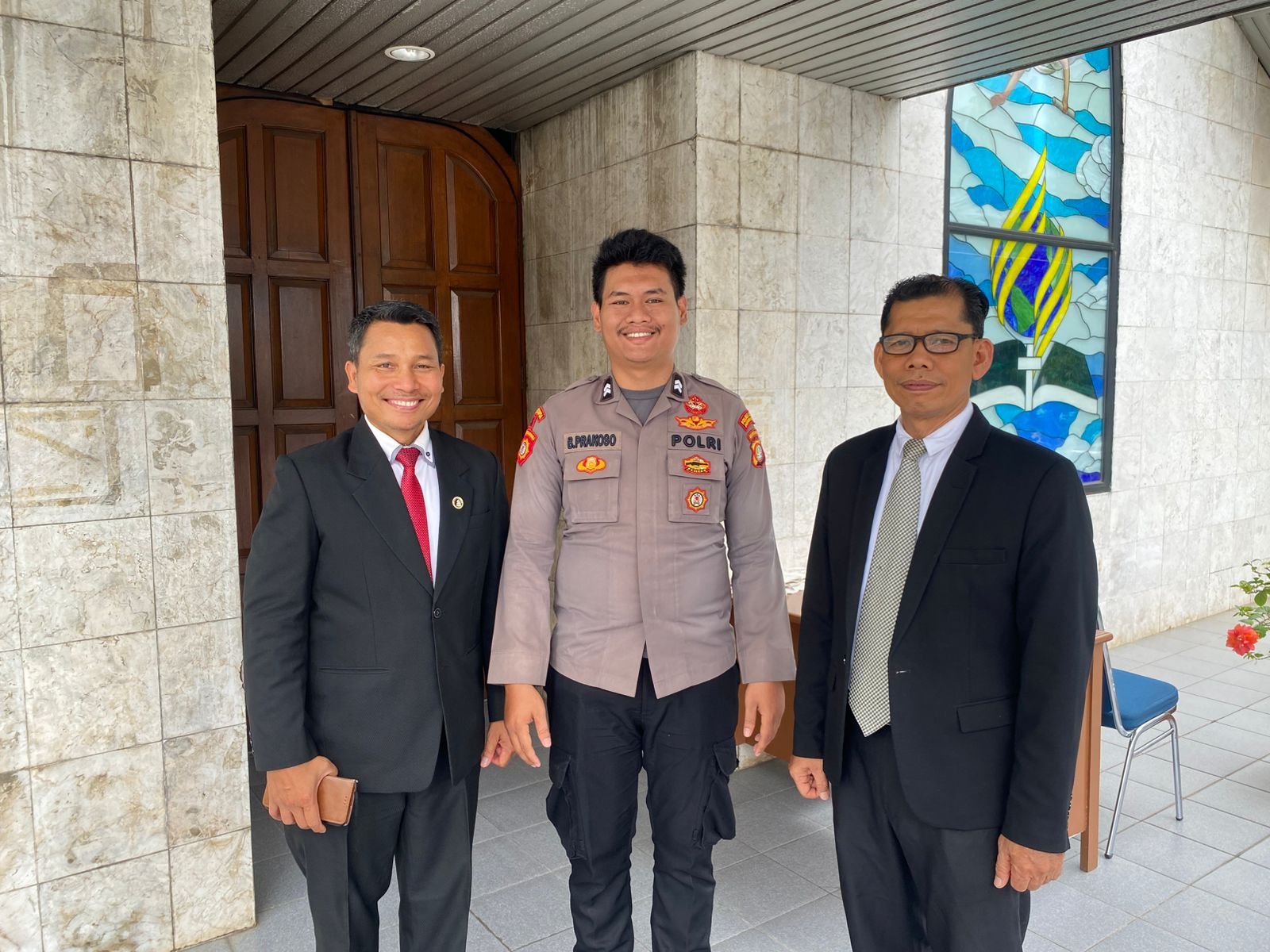 Dalam kesempatan tersebut, petugas patroli Briptu Bagus melakukan pemantauan situasi di sekitar lokasi gereja dan bertemu dengan Pendeta Saut Purba dan pengurus Gereja serta menyampaikan imbauan kamtibmas.
