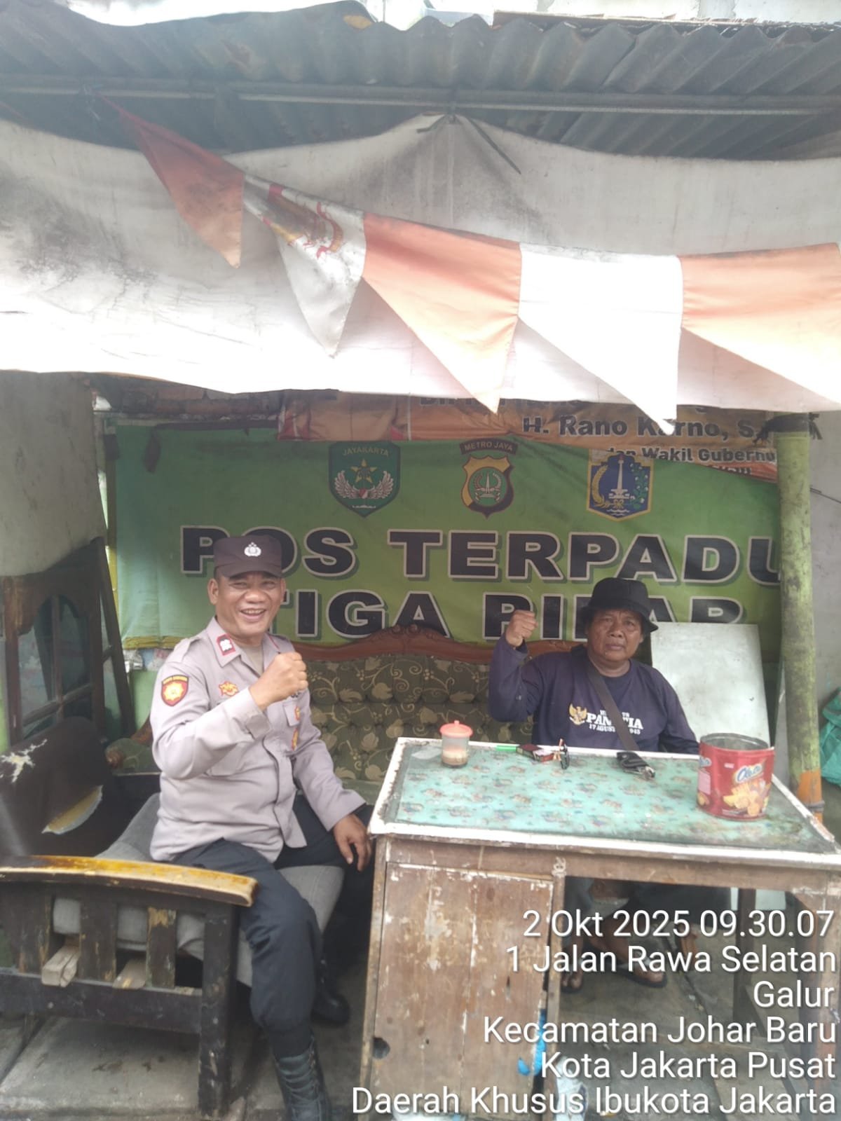 Harmoninews.com (Jakarta Pusat) – Upaya menjaga keamanan dan ketertiban masyarakat (kamtibmas) terus digencarkan jajaran Polsek Johar Baru. Pada Kamis (2/10/2025) pukul 09.39 WIB, Kapolsubsektor Galur, Aiptu Zulfikar HSB, melaksanakan patroli dialogis di Lokbin Pasar Gembrong, Jalan Selatan RT 11 RW 04, Kelurahan Galur, Kecamatan Johar Baru, Jakarta Pusat.