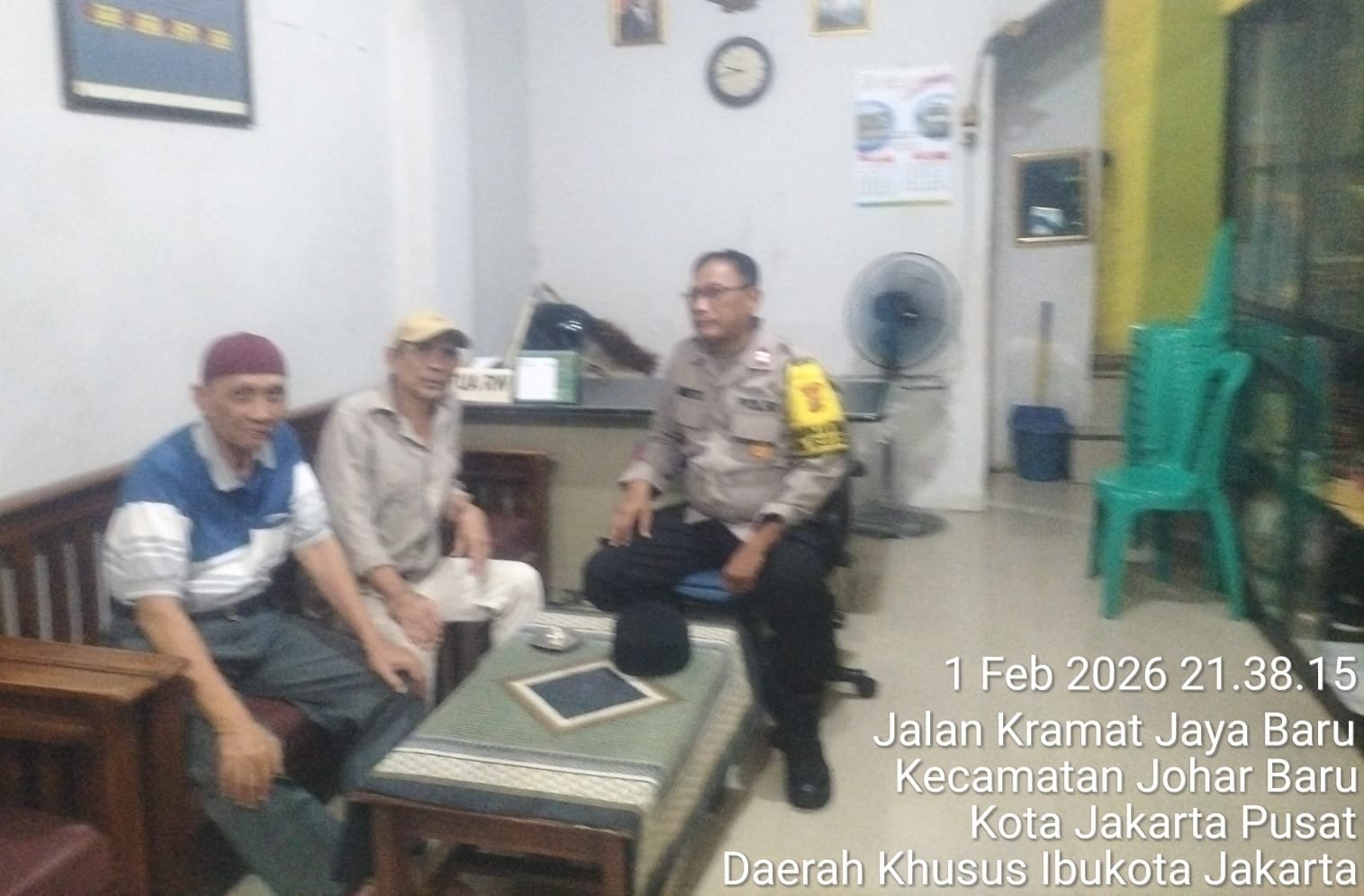 Harmoninews.com (Jakarta Pusat) — Upaya pencegahan gangguan keamanan dan ketertiban masyarakat terus dilakukan jajaran Polsek Johar Baru melalui pendekatan dialogis dan persuasif. Bhabinkamtibmas Kelurahan Johar Baru Aiptu Sunarto melaksanakan patroli dialogis, sambang warga, serta cooling system di wilayah RW 02 Kelurahan Johar Baru, Jakarta Pusat, Minggu (1/2/2026) malam.