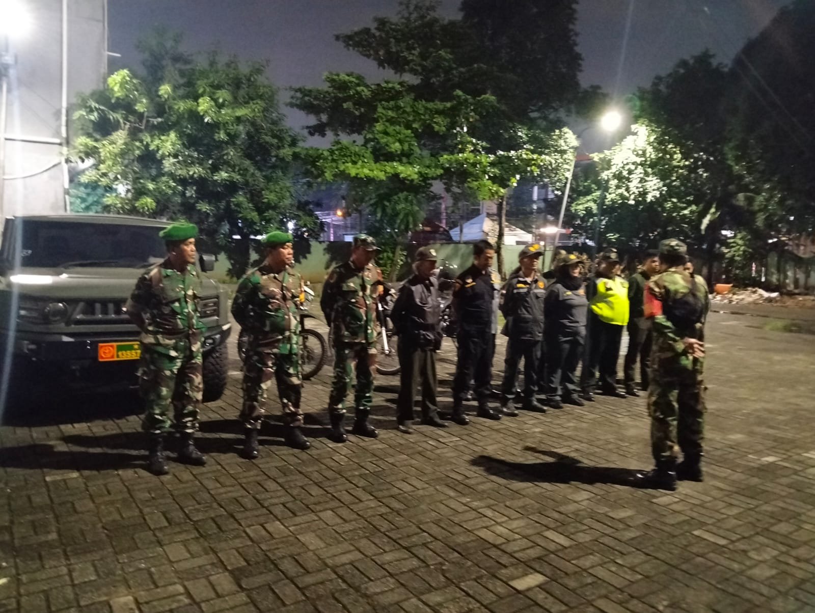 Patroli dilakukan menggunakan satu unit kendaraan roda empat Maung serta enam unit sepeda motor dengan personel gabungan yang terdiri dari TNI, linmas, mitra jaya, ormas setempat dan warga sekitar.