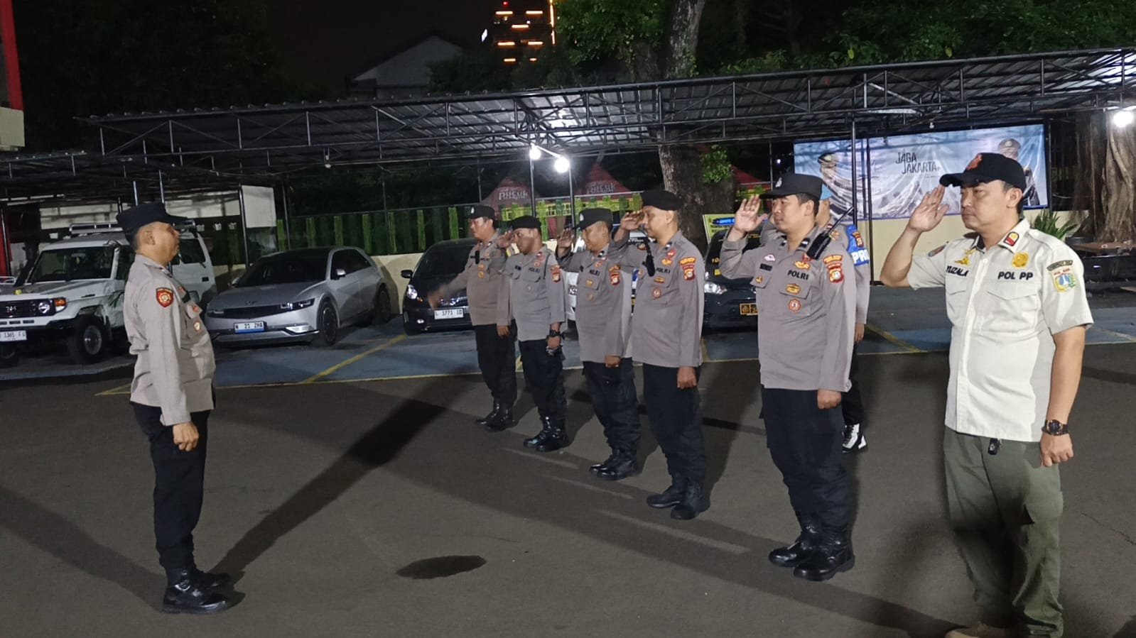 Apel kesetiaan dilaksanakan dengan penuh disiplin, diawali pengecekan pasukan dan penyampaian arahan penting terkait tugas pengamanan.
