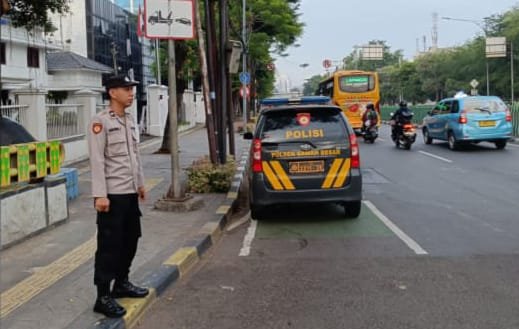 Harmoninews.com (Jakarta Pusat) – Panit 2 Samapta Polsek Sawah Besar, Aiptu Toni Susanto, melakukan pengawasan dan pengaturan arus lalu lintas di sepanjang Jl. Gunung Sahari Raya dan depan sekolahan Santa Ursula serta depan masjid Istalal, Sawah Besar Jakarta Pusat. Rabu pagi (7/5/2025)