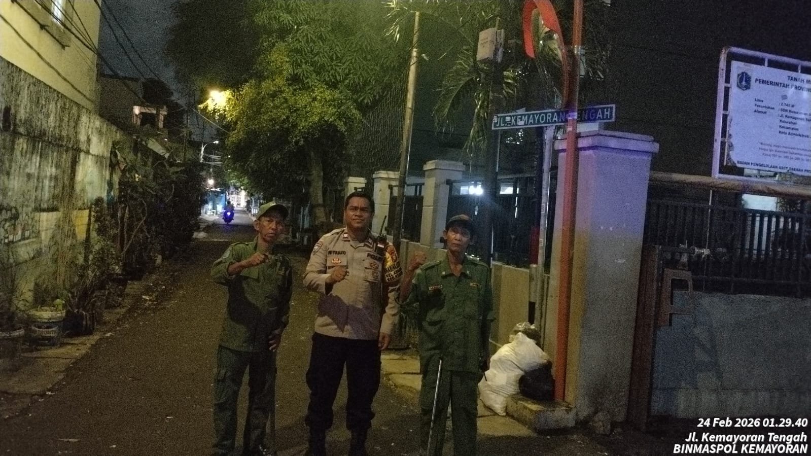 Kegiatan yang berlangsung sekitar pukul 01.40 WIB tersebut dilaksanakan di Jalan Kemayoran Tengah RW 07, Kelurahan Kemayoran, Jakarta Pusat. Bhabinkamtibmas Kelurahan Kemayoran, Aiptu Dwi Yulianto, melaksanakan patroli sekaligus menyambangi petugas Satkamling setempat, yakni Bapak Iis dan Bapak Lukman.