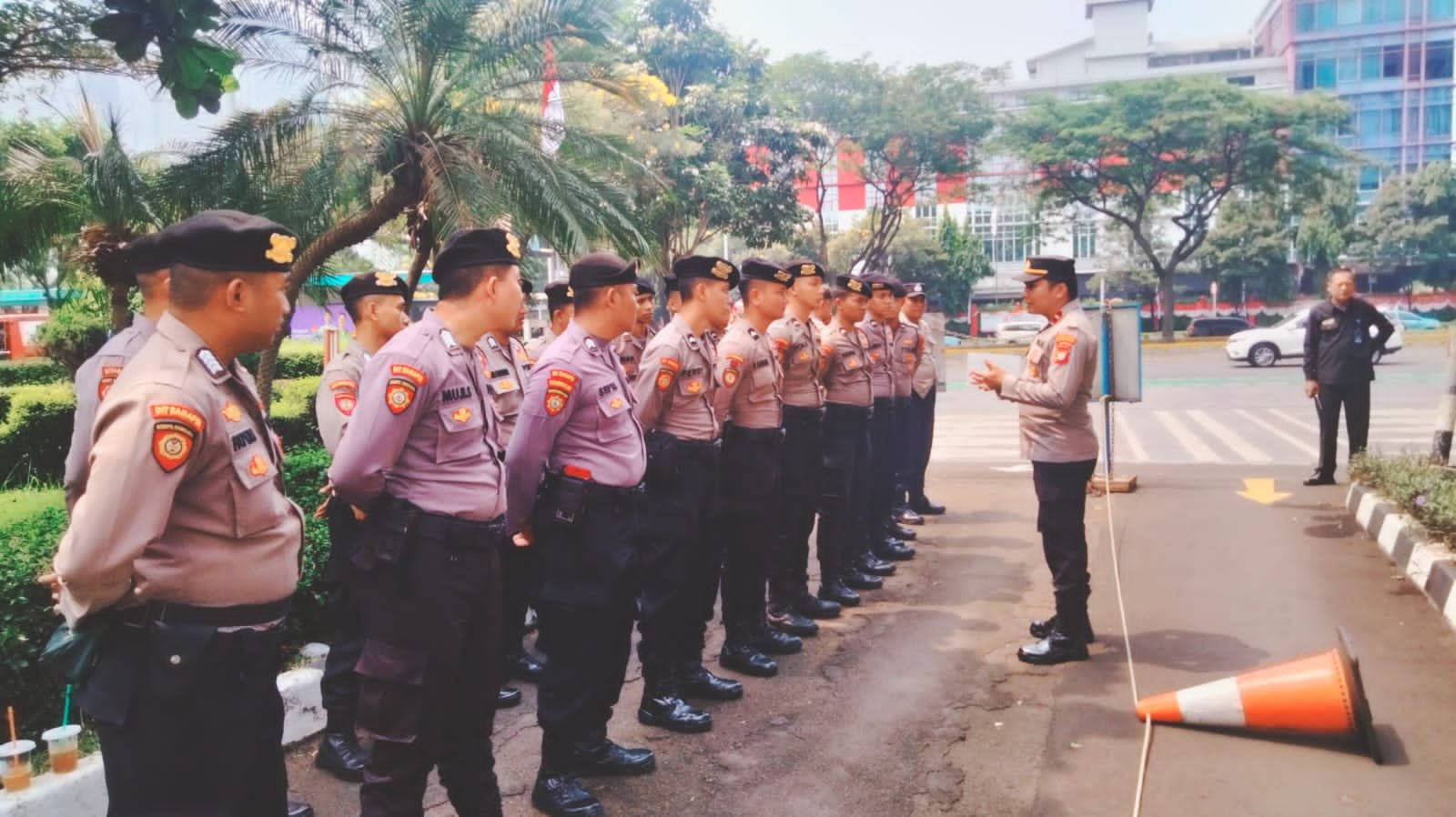 Jumlah pengamanan yang di libatkan 35 Personel terdiri dari Polda Metro Jaya, Koramil Tanah Abang dan Polsek Metro Tanah Abang. selesai apel personel di standby kan di objek menunggu massa yang datang.