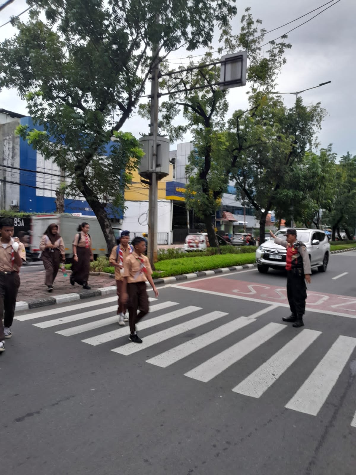 Unit Samapta Polsek Kemayoran melaksanakan pengaturan lalu lintas, membantu masyarakat dan ketika hendak menyebarang jalan, petugas juga melakukan pengaturan terhadap anak-anak sekolahan yang menyebrang menuju Sekolah.