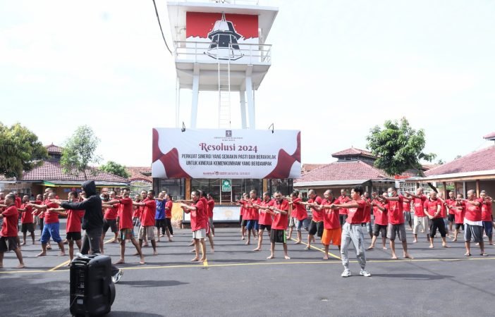 Harmoninews.com (Tangerang) – Lapas Pemuda Kelas IIA Tangerang laksanakan senam kebugaran jasmani bagi tahanan baru yang masih berada di kamar masa pengenalan lingkungan. Hal ini dilaksanakan sebagai upaya menjaga dan meningkatkan daya tahan tubuh seluruh WBP, khususnya di masa perubahan musim yang bisa membuat orang gampang terkena penyakit.