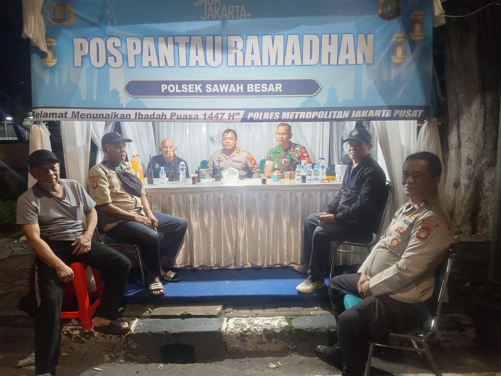 Harmoninews.com (Jakarta Pusat) — Polsek Sawah Besar bersama Pokdar Kamtibmas melaksanakan penjagaan Pos Pantau Ramadan 1447 H di kawasan Dobrak Jl. Gunung Sahari Raya, Pasar Baru, Sawah Besar, Jakarta Pusat, Senin (23/2/2026) pukul 22.00 WIB. Kegiatan dipimpin Kanit Binmas AKP Dwi Budianto, SH dengan tujuan mengantisipasi tawuran, petasan, serta gangguan kamtibmas menjelang waktu sahur selama bulan Ramadhan.