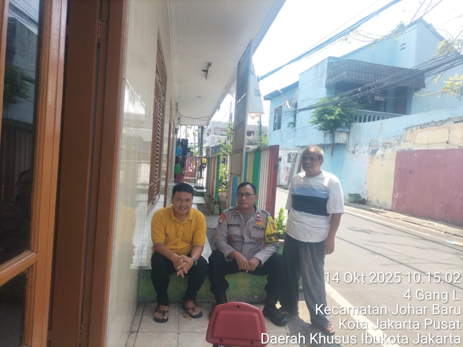 Kegiatan yang berlangsung di Sekretariat RW 05, Jl. Johar Baru IV A ini menyasar tokoh masyarakat, di antaranya Bapak Oding selaku Pelmas RW 05 dan Bapak Ardhi selaku LMK RW 05. Dalam kesempatan tersebut, Bhabinkamtibmas berdialog langsung untuk menyerap aspirasi warga sekaligus menyampaikan imbauan Kamtibmas.