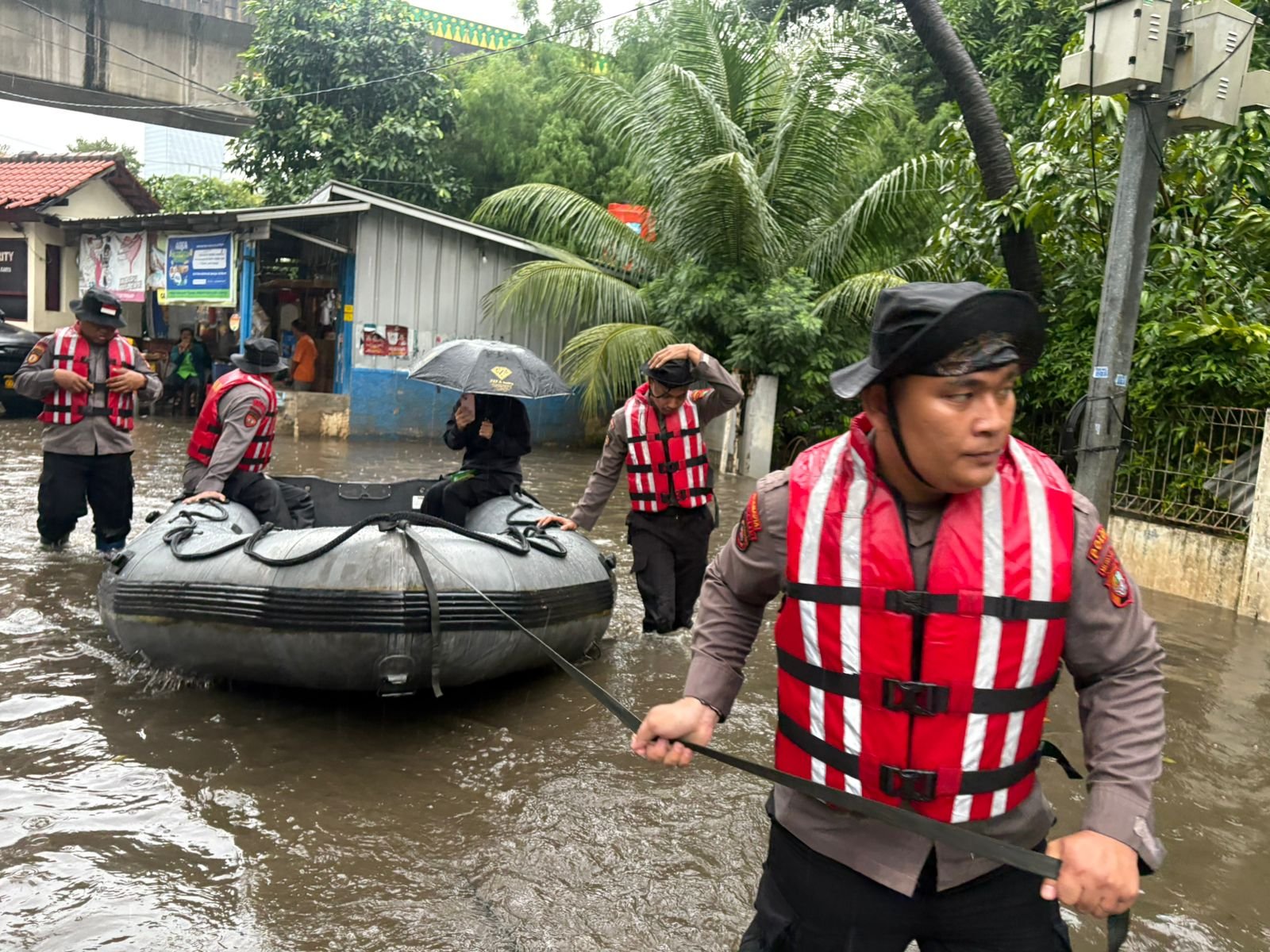 Polda Metro Jaya Evakuasi Warga Terdampak Banjir di Asrama Polisi Pondok Karya