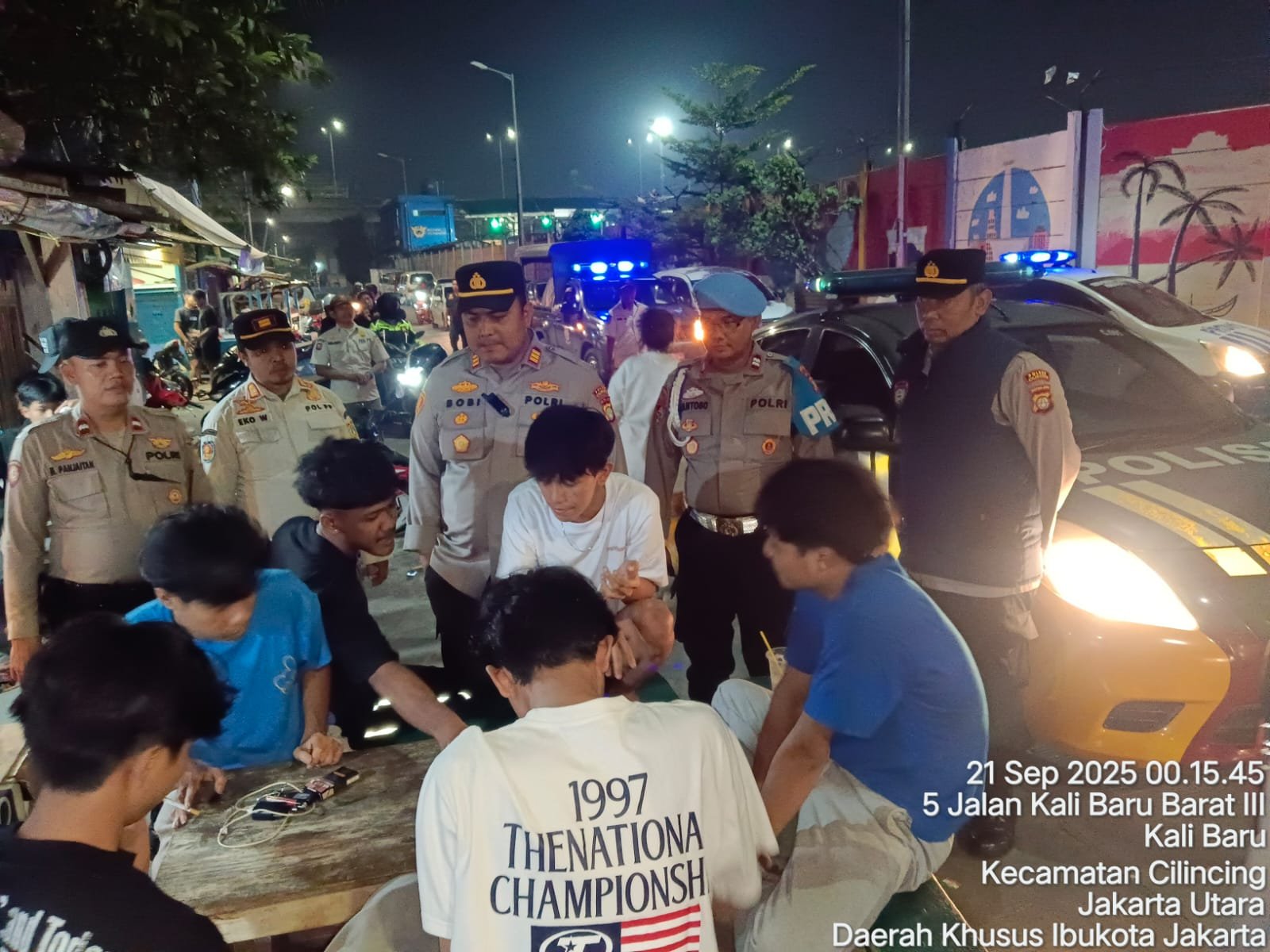 Harmoninews.com (Jakarta Utara) – Polsek Cilincing bersama unsur Tiga Pilar menggelar patroli Kegiatan Rutin yang Ditingkatkan (KRYD) di sejumlah titik rawan tawuran, Minggu (21/9/2025) dini hari.