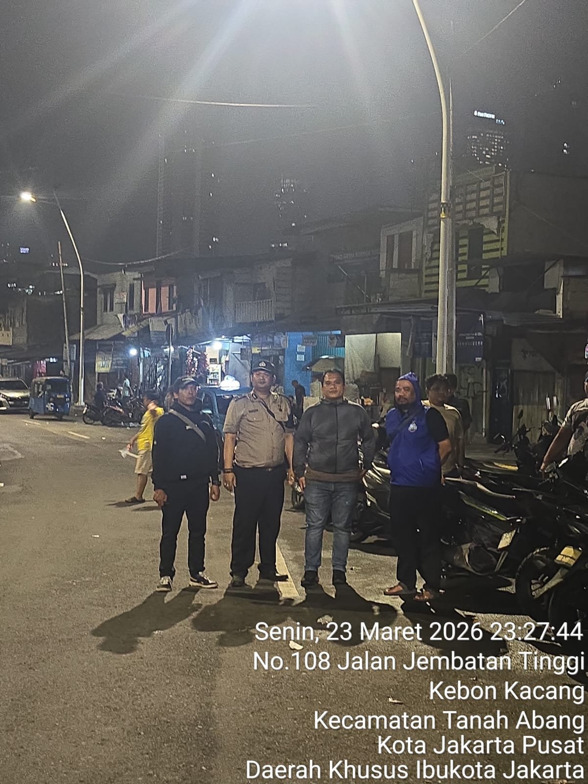 Kegiatan tersebut dilaksanakan pada Senin (23/3/2026) sekitar pukul 23.37 WIB di kawasan Jalan KS Tubun, Jati Bunder, Jembatan Tinggi, Tanah Abang.