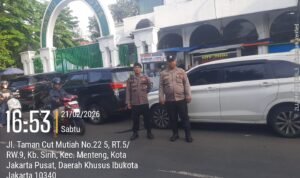 Harmoninews.com (JAKARTA PUSAT) — Kapolsubsektor Pasar Baru Aiptu Ranu Prawoto bersama lima personel Polsek Sawah Besar melaksanakan monitoring dan pelayanan pengamanan kegiatan Shalat Tarawih di Masjid Istiqlal, Jalan Taman Wijaya Kusuma, Kelurahan Pasar Baru, Sawah Besar, Jakarta Pusat, Jumat (20/2/2026) pukul 20.35 WIB. Kegiatan ini bertujuan memberikan rasa aman serta pelayanan kepada jemaah agar dapat menjalankan ibadah dengan nyaman selama bulan Ramadhan.