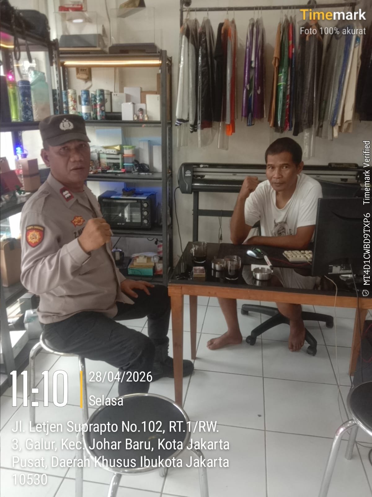 Harmoninews.com (Jakarta Pusat) – Upaya menjaga keamanan dan ketertiban masyarakat (kamtibmas) terus dilakukan jajaran Polsek Johar Baru melalui kegiatan sambang dan komunikasi aktif dengan warga. Kegiatan tersebut berlangsung pada Selasa (28/4/2026) pukul 11.05 WIB di Jl. Letjen Suprapto RT 002 RW 002, Kelurahan Galur, Kecamatan Johar Baru, Jakarta Pusat.
