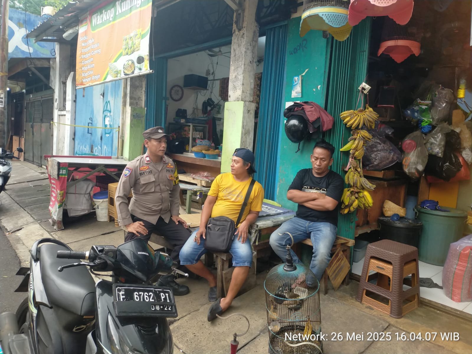 Petugas menyambangi Sdr. Nanang, seorang pedagang makanan burung, dan sejumlah warga sekitar. Dalam kunjungannya, Aiptu Baktiar menyampaikan pesan-pesan kamtibmas, deteksi dini gangguan keamanan, serta ajakan untuk menjaga lingkungan agar tetap aman dan kondusif.