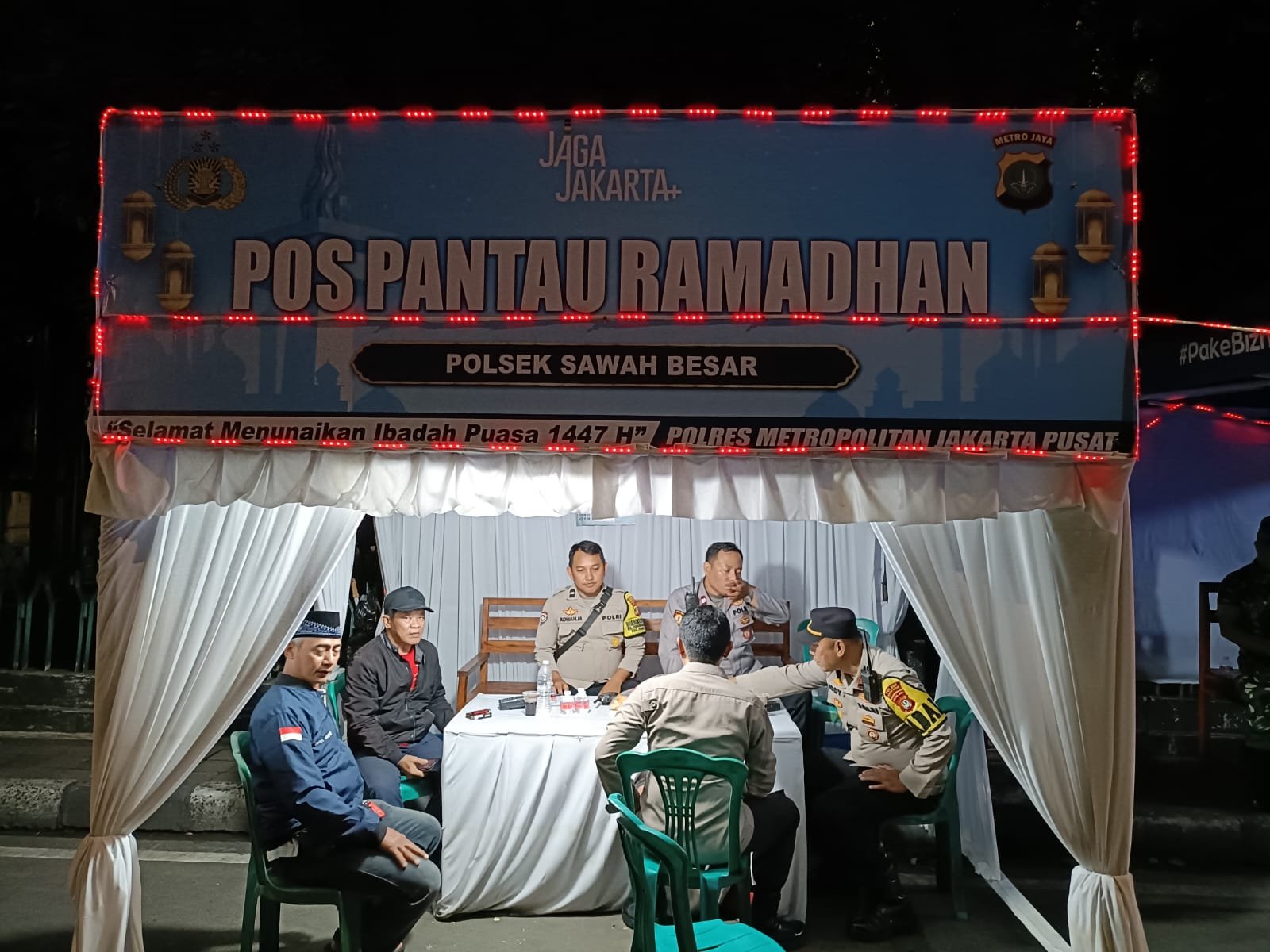 Harmoninews.com (Jakarta Pusat) — Kapolsek Sawah Besar Kompol Rahmat Himawan S.Sos., MH mengambil langkah konkret menjaga situasi keamanan selama Bulan Suci Ramadhan 1447 H/2026 dengan mendirikan tiga Pos Pantau Ramadhan di wilayah hukum Polsek Sawah Besar, Jakarta Pusat, Rabu (18/2/2026), Kegiatan ini bertujuan mengantisipasi potensi gangguan kamtibmas, khususnya tawuran remaja, penggunaan petasan, serta gangguan keamanan masyarakat setelah sholat tarawih hingga menjelang sahur.