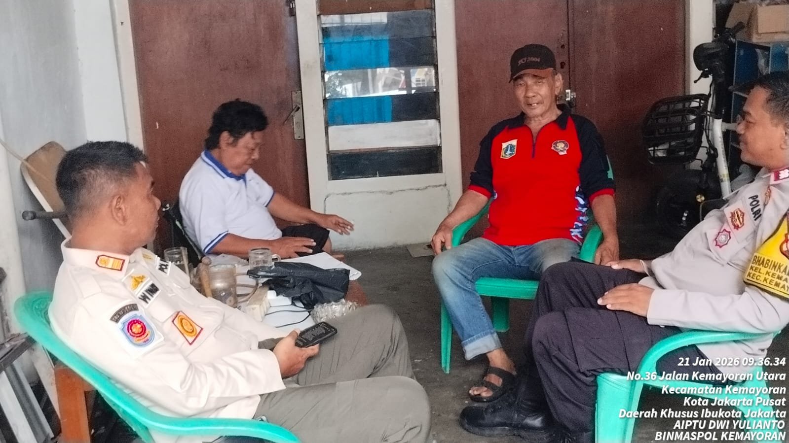 Kegiatan sambang dan door to door system (DDS) ini dilaksanakan oleh Aiptu Dwi Yulianto, Bhabinkamtibmas Kelurahan Kemayoran, yang menyambangi warga di Jl. Kemayoran Utara No. 36 RW.07, Kelurahan Kemayoran, Jakarta Pusat, sekitar pukul 11.30 WIB.