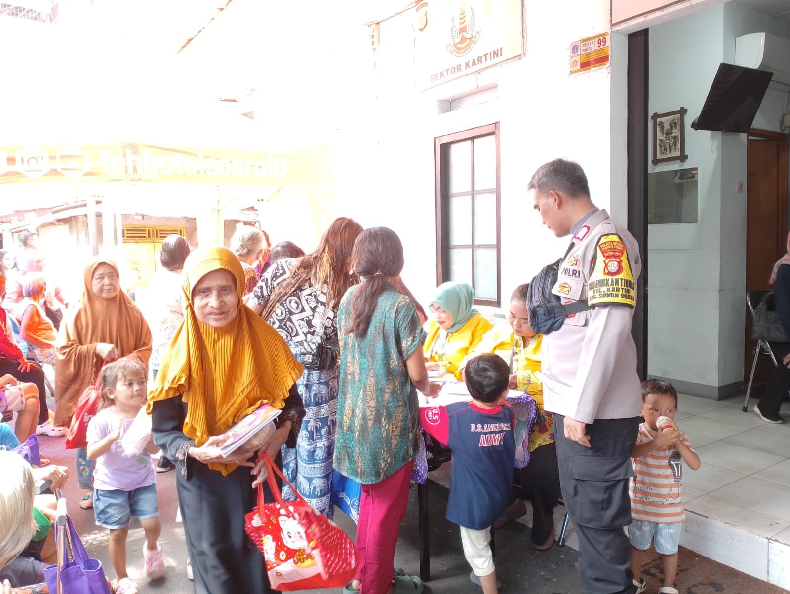 Kegiatan bertajuk Polri Peduli Kesehatan Warga ini dilakukan bersama unsur kelurahan, Puskesmas Kartini, kader Posyandu, kader PKK, Babinsa, serta tokoh masyarakat. Pemeriksaan meliputi pendaftaran, pengukuran berat dan tinggi badan, lingkar kepala balita, pemberian makanan tambahan, serta pengecekan kesehatan lansia guna mencegah stunting dan meminimalisir risiko penyakit seperti diabetes, kolesterol, dan asam urat.