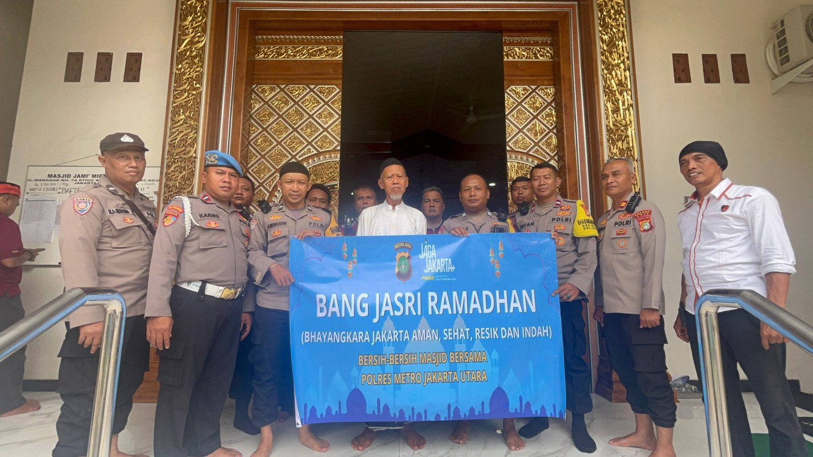 Harmoninews.com (Jakarta Utara) – Dalam rangka mendukung kebersihan lingkungan dan menciptakan suasana ibadah yang nyaman menjelang bulan suci Ramadhan, jajaran Polsek Koja menggelar kegiatan Program Bang Jasri (Bhayangkara Jakarta Asri) di Masjid Jami Miftahul Huda, Kelurahan Tugu Utara, Kecamatan Koja, Jakarta Utara, Selasa (3/3/2026).