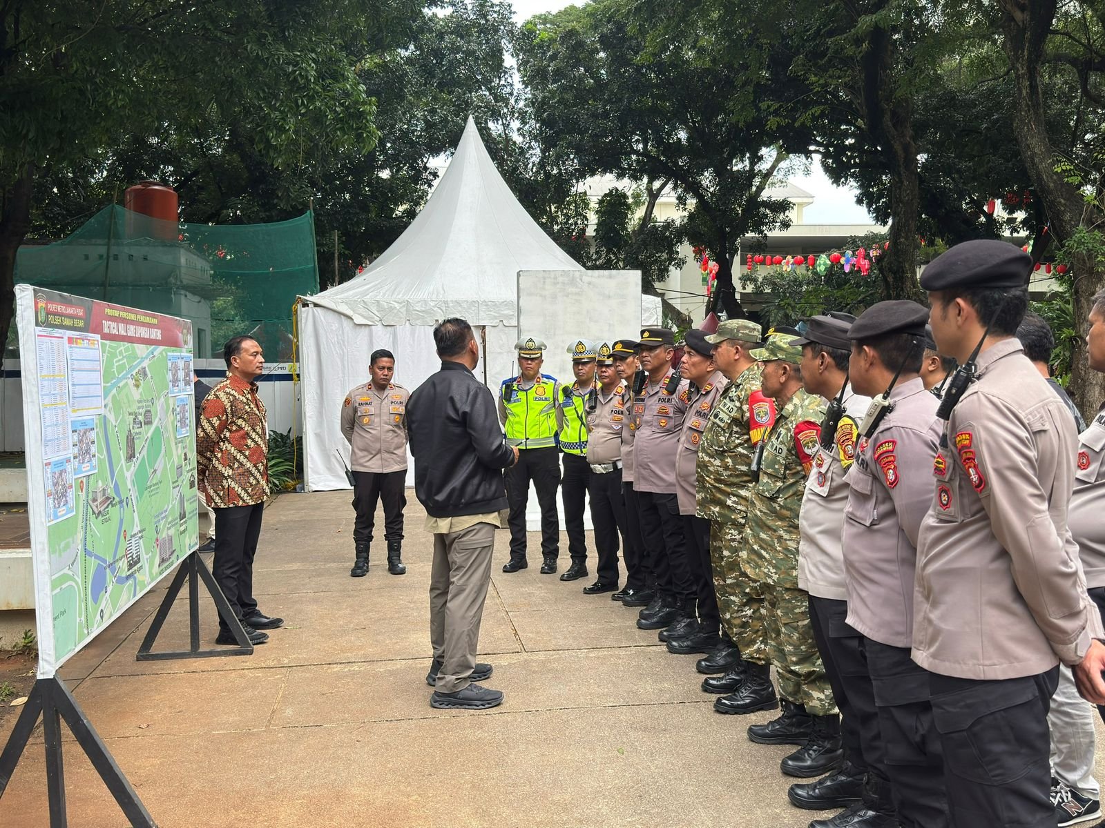 Harmoninews.com (Jakarta Pusat) — Personel gabungan melaksanakan Tactical Wall Game (TWG) dan Apel Pelayanan dalam rangka pengamanan kegiatan Harmoni Imlek Nusantara 2026 di kawasan Lapangan Banteng, Sawah Besar, Jakarta Pusat, Jumat (27/2/2026) pukul 16.00 WIB.