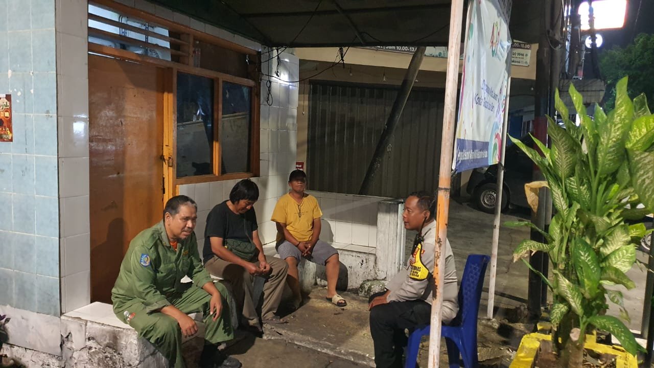 Pada Selasa dini hari, Bhabinkamtibmas Kelurahan Pasar Baru, Aipda Bambang S., mengunjungi Pos Satkamling di Jalan Krekot Bunder Raya. Dalam kesempatan tersebut, petugas berdialog langsung dengan warga setempat, termasuk Bapak Rudi, untuk memberikan himbauan terkait antisipasi bahaya kebakaran dan menjaga ketertiban lingkungan guna mencegah tawuran serta kejahatan seperti pencurian kendaraan bermotor (curanmor).