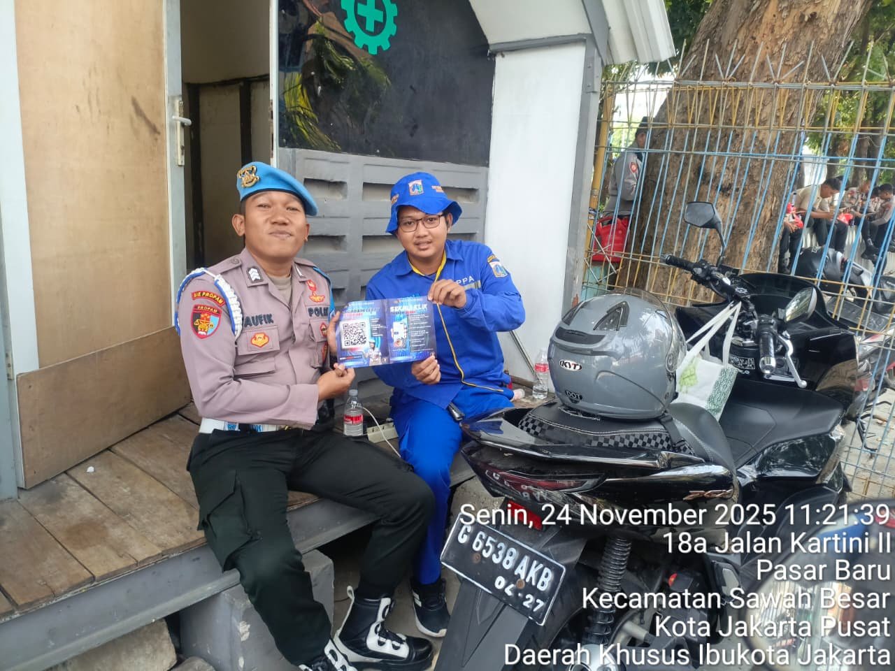 Harmoninews.com (Jakarta Pusat) — Kanit Propam Polsek Sawah Besar Ipda Budianto Siagian bersama Aipda Sukriyadi dan Bripgadir Taufik menggelar sosialisasi serta penempelan stiker Barcode Pengaduan Cepat Propam Polri di sejumlah titik keramaian. Dalam kegiatan ini, Ipda Budianto menekankan pesan penting terkait pengawasan internal dan kemudahan masyarakat melapor apabila menemukan dugaan penyalahgunaan kewenangan anggota Polri. Senin (24/11/2025) pukul 08.00 WIB